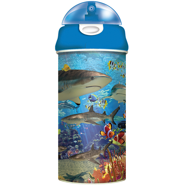Eine robuste Trinkflasche aus Kunststoff mit Strohdeckel und abnehmbarem Schultergurt. Mit lebendigen Farben und unglaublichem 3D Effekt. Höhe 20cm, Füllkapazität 600ml - perfekt für Kinder jeden Alters für Ausflüge in den Park, einen Tag im Freien oder zum einfachen Transportierten in der Lunchbox.
