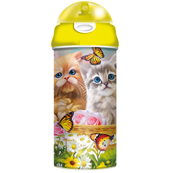 Eine robuste Trinkflasche aus Kunststoff mit Strohdeckel und abnehmbarem Schultergurt. Mit lebendigen Farben und unglaublichem 3D Effekt. Höhe 20cm, Füllkapazität 600ml - perfekt für Kinder jeden Alters für Ausflüge in den Park, einen Tag im Freien oder zum einfachen Transportierten in der Lunchbox.