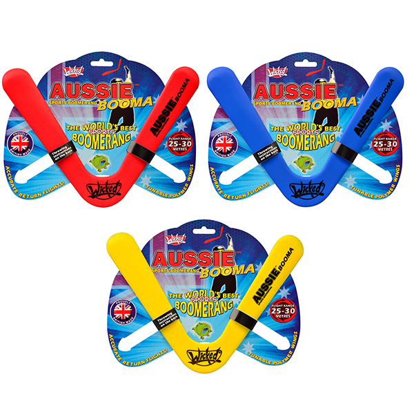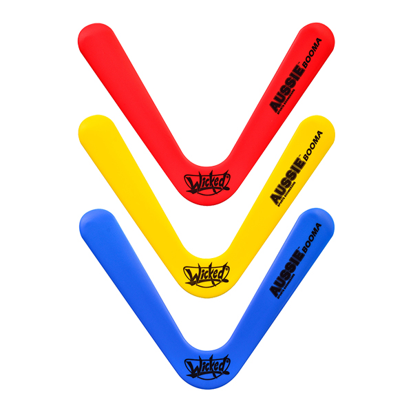 Aussie Boomerang, der originelle Boomerang mit hervorragender Flugeigenschaft. Kann bis zu 30 Meter weit fliegen und wiegt nur 59 Gramm.