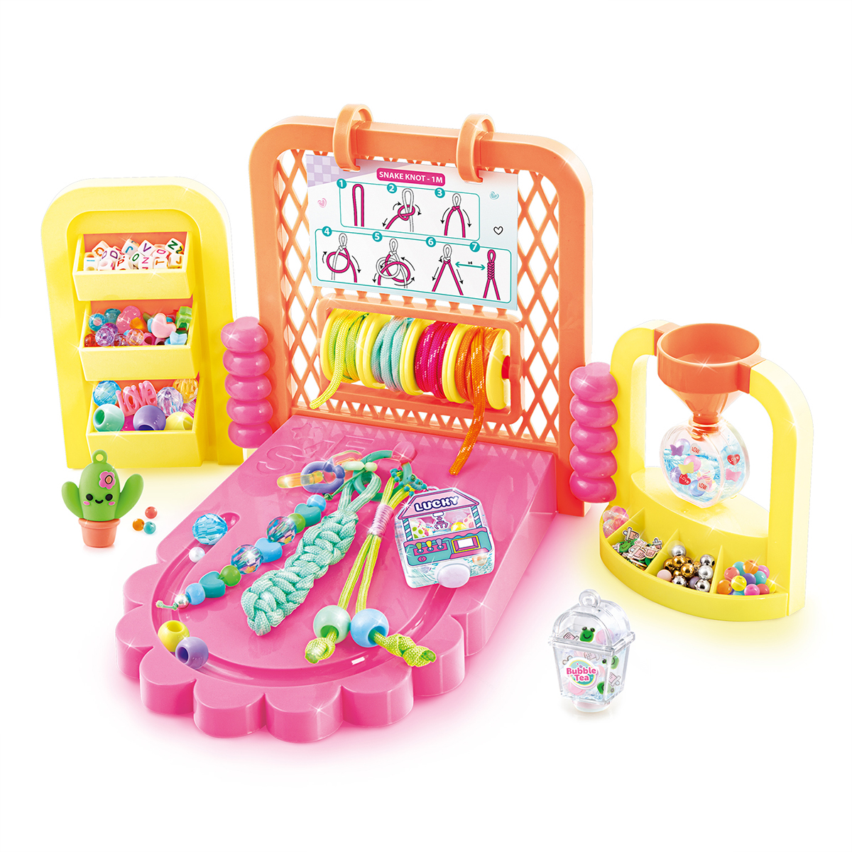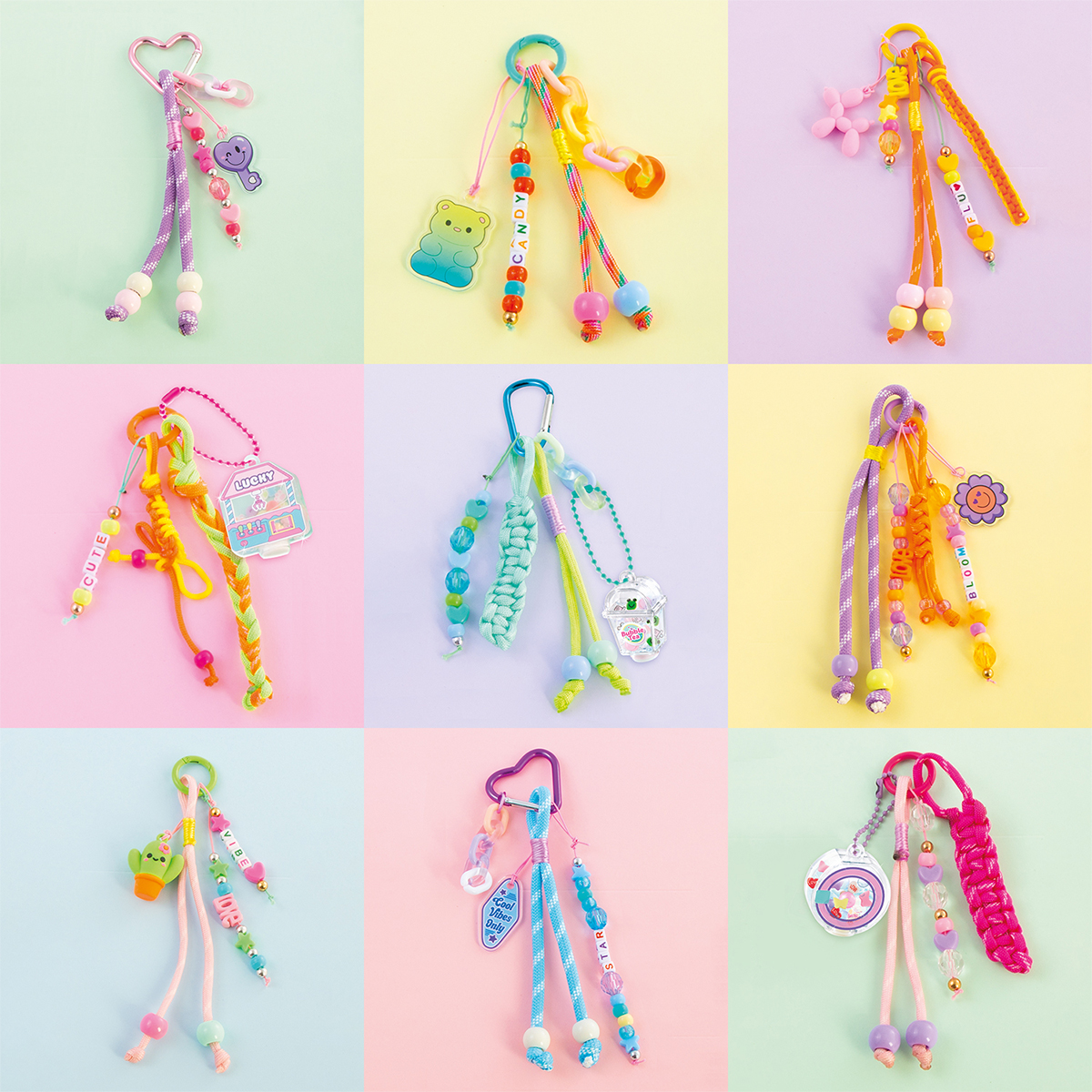 Gestalte, designe und individualisiere mit dem 3-in-1-DIY-Schlüsselanhänger-Studio! Flechte trendige Paracords, fertige funkelnde türkisfarbene Anhänger an und dekoriere mit Perlen. Bis zu 10 Schlüsselanhänger kannst du personalisieren – alles, was du brauchst, findest du in einem Studio!