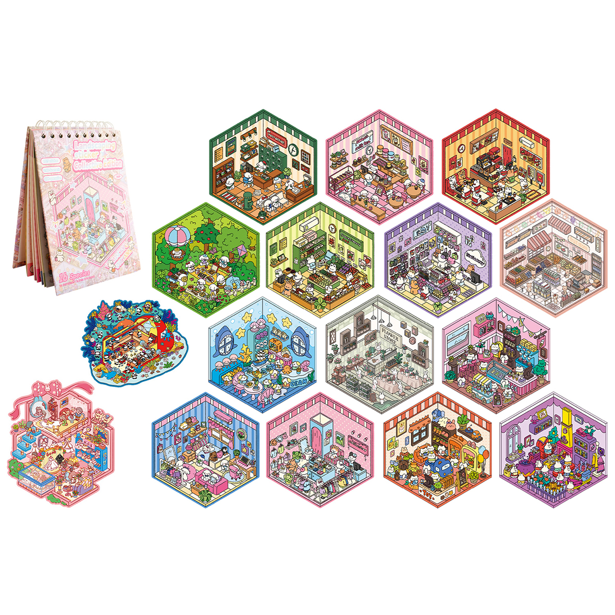 Sticker Set mit 3D Szenzenbuch, 16 verschiedene Szenen.