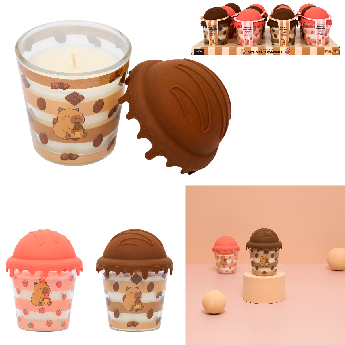 Duftkerze Capybara im Eisbecher, 2-fach assortiert. Ein herziges Mitbringsel.