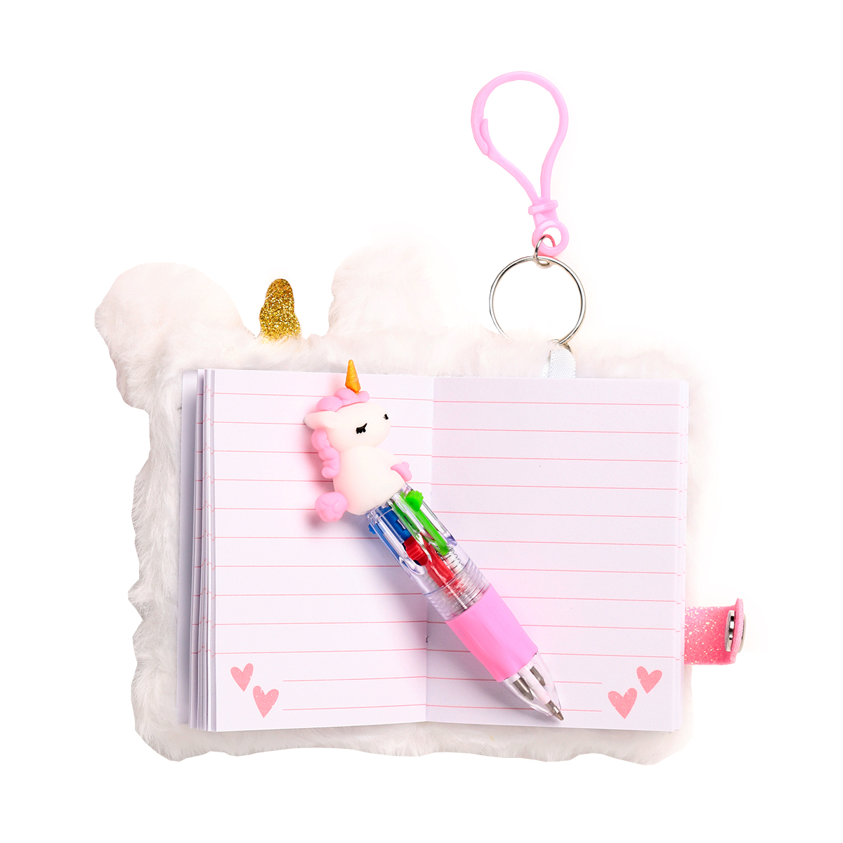 Einhorn Schreib-Set bestehend aus Plüschnotizbuch m. 4 farbigem Stift
