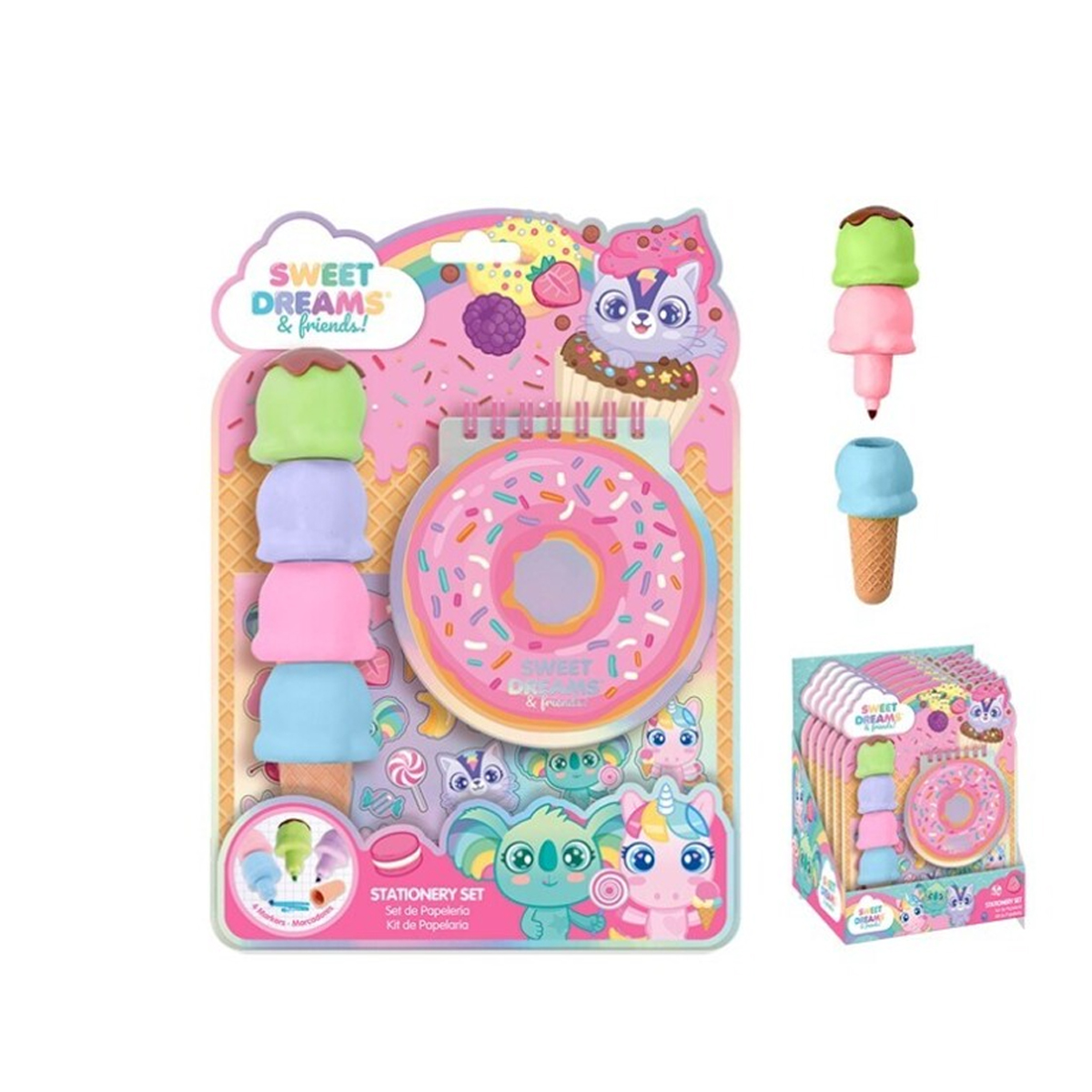 Einhorn Schreibset mit Icecream Stiften und Notizbuch.
