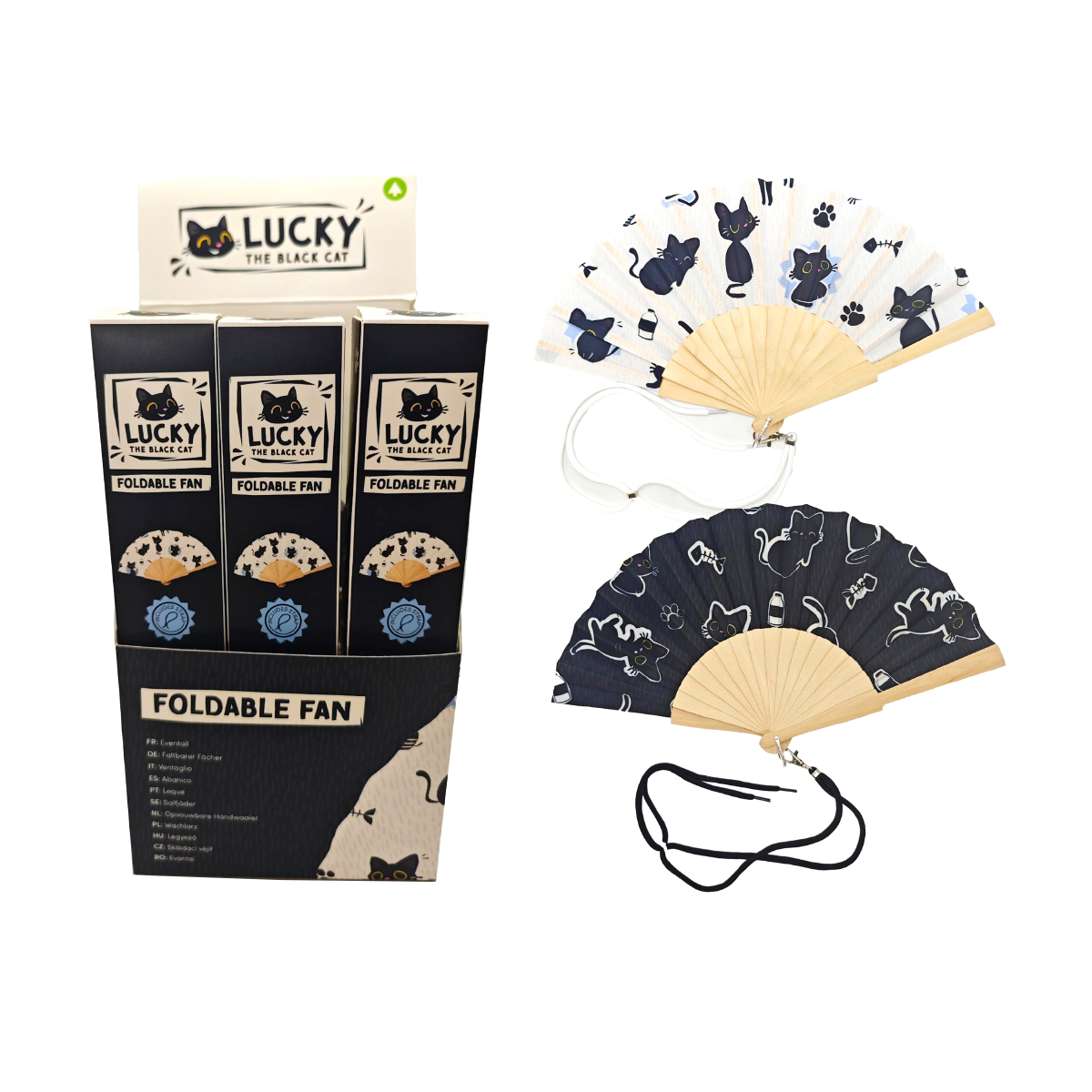 Lucky the Black Cat Schwarze Katze Faltbarer Handfächer, 2-fach assortiert