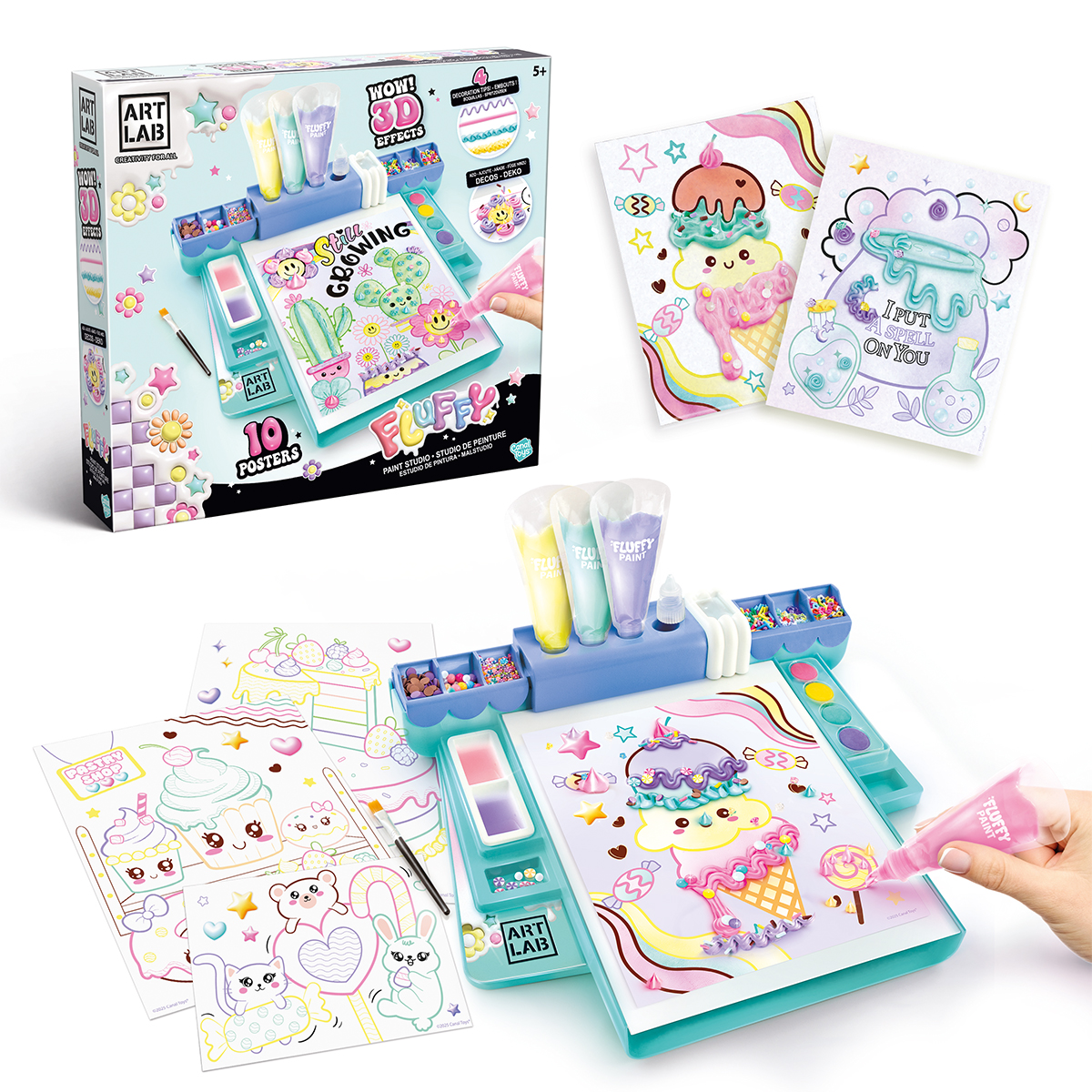 Erstellen Sie erstaunliche 3D-Gemälde mit dem Fluffy Paint Studio! Wählen Sie Ihre Spitze und Farbe, um wachsende Farbeffekte auf den Postern zu erzeugen. Fügen Sie Dekorationen hinzu, um es noch lustiger zu machen! Alles, was Sie brauchen für die Erstellung von 20 Postern brauchen, ist enthalten.