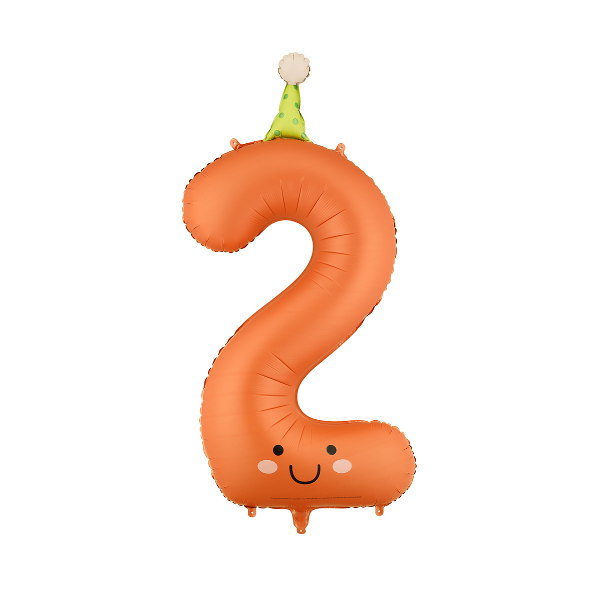 Mattierter Folienballon Zahl 2 in orange mit bunter Mütze. Grösse vor dem Aufblasen ca. 95 cm, Grösse nach dem Aufblasen ca. 86 cm. Zum Befüllen mit Luft und Helium. Set enthält einen Trinkhalm.