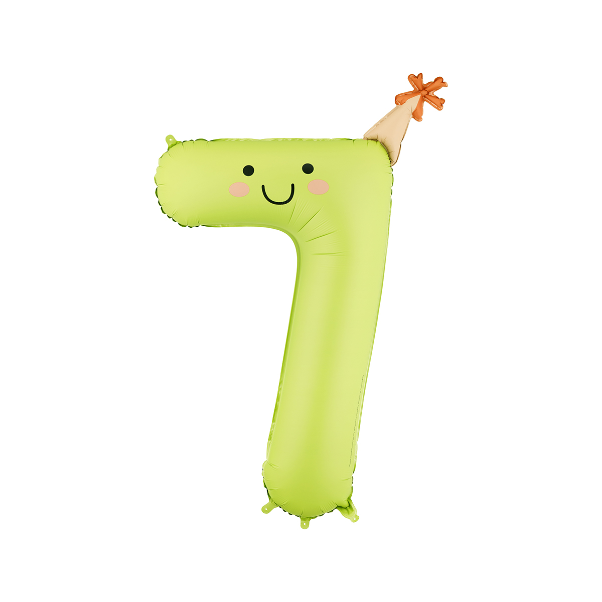 Mattierter Folienballon Zahl 7 in hellgrün mit bunter Mütze. Grösse vor dem Aufblasen ca. 95 cm, Grösse nach dem Aufblasen ca. 86 cm. Zum Befüllen mit Luft und Helium. Set enthält einen Trinkhalm.