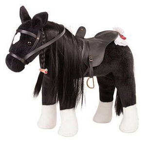 Reiten ist eine wunderbare Sportart. Das Pferd striegeln und füttern, liebhaben und die Mähne schick frisieren. Mit diesem grossen Pferd aus Plüsch ist das alles möglich. Eine Frisierbürste ist gleich anbei. Inklusive Sattel, Zaumzeug und Picknickdecke. Für Stehpuppen bis 50cm.