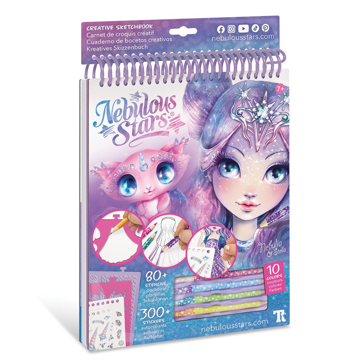 "Das kreative Skizzenbuch bietet eine beeindruckende Anzahl von Aktivitäten und Inhalte von höchster Qualität. Es enthält alles, was für ein fantastisches mystisches Erlebnis in einer wunderschönen visuellen Umgebung erforderlich ist. ""The Nebulous Stars – Nebulia"" Creative Sketchbook steckt voller wunderbarer Aktivitäten und Aufkleber. Lass deiner Kreativität mit verschiedenen künstlerischen Aktivitäten wie Nebulias Modedesign und Zentangle-Kunst freien Lauf. Das Skizzenbuch enthält 35 Skizzenseiten, über 80 Schablonen, 3 Rubbelvorlagen, über 300 Sticker und 5 Buntstifte. Ausserdem enthält es Zeichentechniken, Farblehre, Inspirationen und Nebulias komplette Geschichte. Empfohlen für Kinder ab 7 Jahren"
