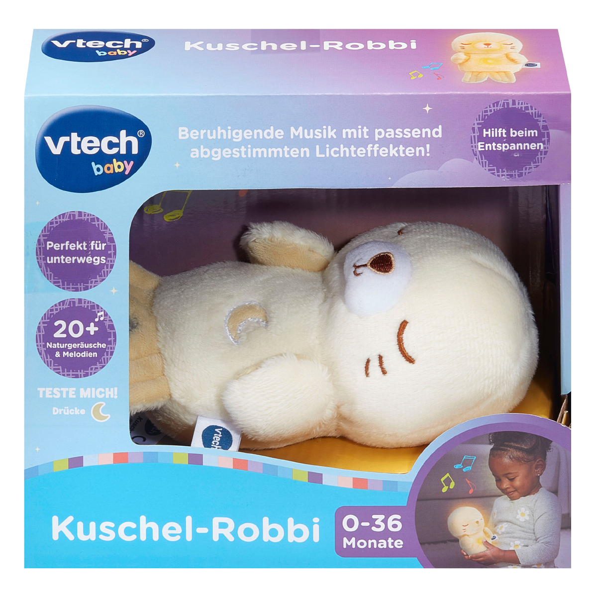 Tierisch süße Träume mit Kuschel-Robbi! Niedliches Robben-Kuscheltier aus weichem Plüsch, das beruhigende Geräusche und Melodien abspielt und passend dazu leuchtet. Die Mondtaste löst beruhigende Melodien und Naturgeräusche (z. B. Wind, Wellen, Regen, Vogelgezwitscher) aus. Lichter leuchten passend zu den Melodien und Geräuschen im Inneren des Plüschtiers auf. Perfekt zum Kuscheln und Beruhigen. Dank der kompakten Größe passt das Plüschtier perfekt in kleine Kinderhände. Die elektronische Einheit kann entnommen und das Plüschtier so in der Waschmaschine gewaschen werden.