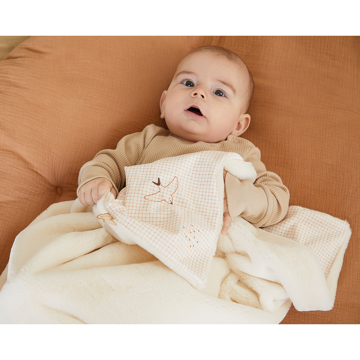 Diese Decke wird das Baby ab seinen ersten Momenten begleiten und ihm Trost und Wärme spenden. Die klassische Farbe passt perfekt zur Welt Ihres Kindes und ist das ideale Geburtsgeschenk für Ihre Lieben. Die Decke ziert eine zart Stickerei mit einer Schwalbe auf einem eleganten Vichy-Muster. Sie besteht aus zwei Materialien Microvelours und Kunstfell und wird Baby in eine Wolke der Zärtlichkeit einhüllen. Die Grösse von 72 x 85 cm ist speziell auf das Baby abgestimmt. Mindestens zu 90 % aus recycelten Materialien und recyceltem Füllmaterial. Maschinenwäsche bei 30 °C. Ab Geburt.