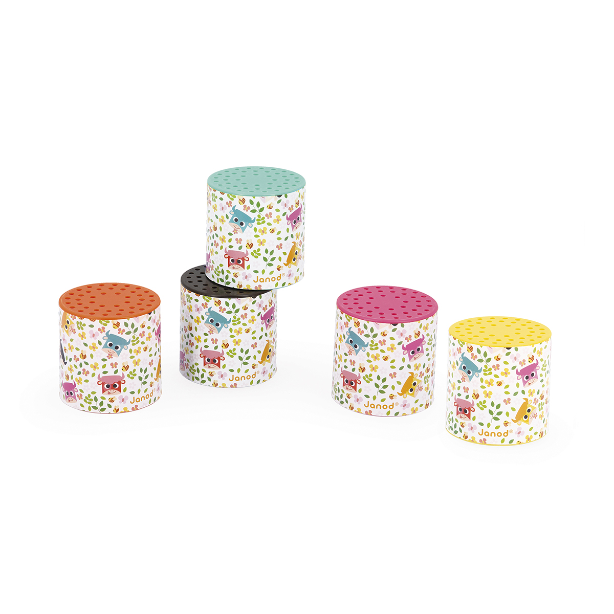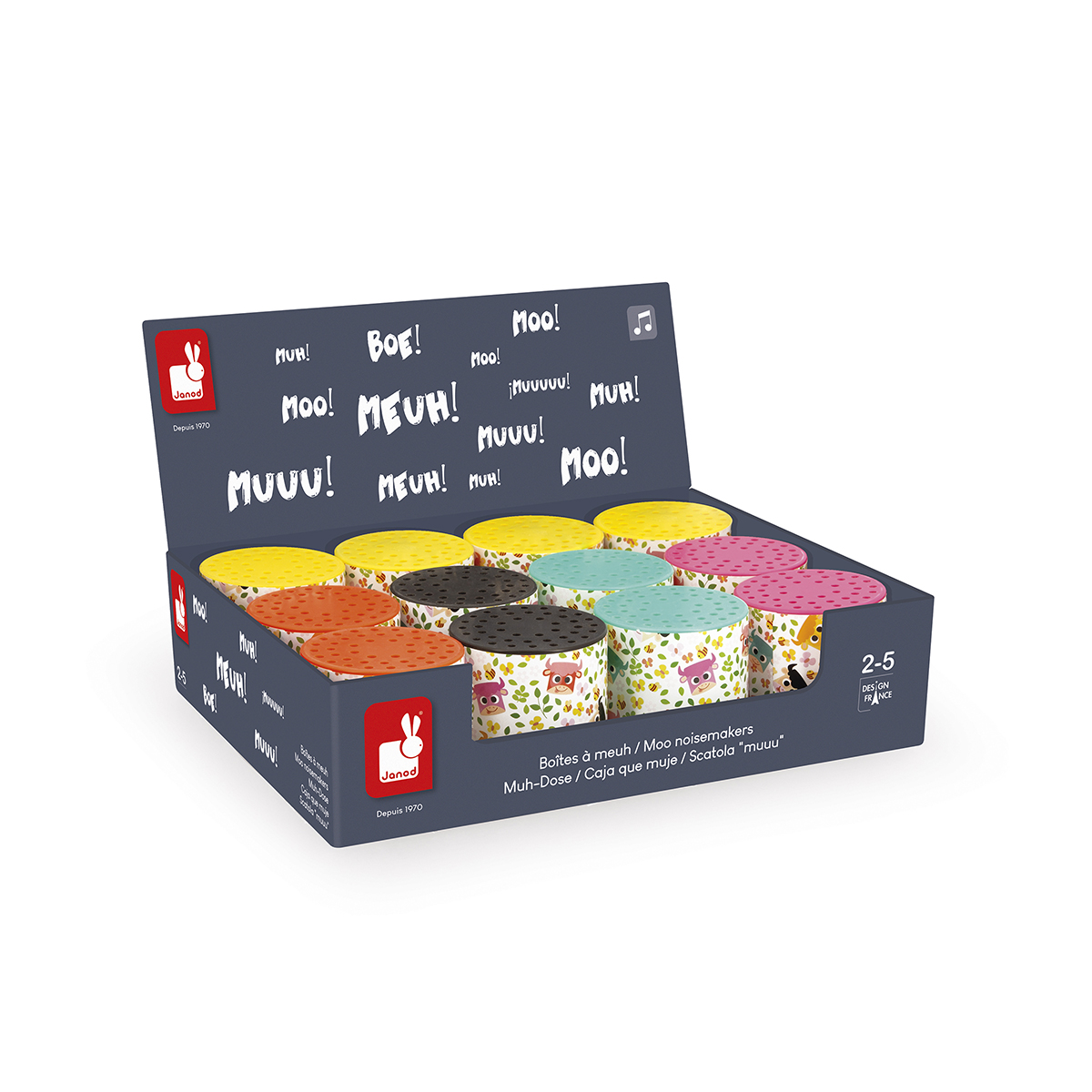 Klassischer Noisemaker. Aus Kunststoff. In unterschiedlichen Farben erhältlich. Größe 6 x 6 x 6 cm. Beim Schütteln ertönen Kuhgeräusche. Geeignet für Kinder von 2-5 Jahren. Zufallsmuster.