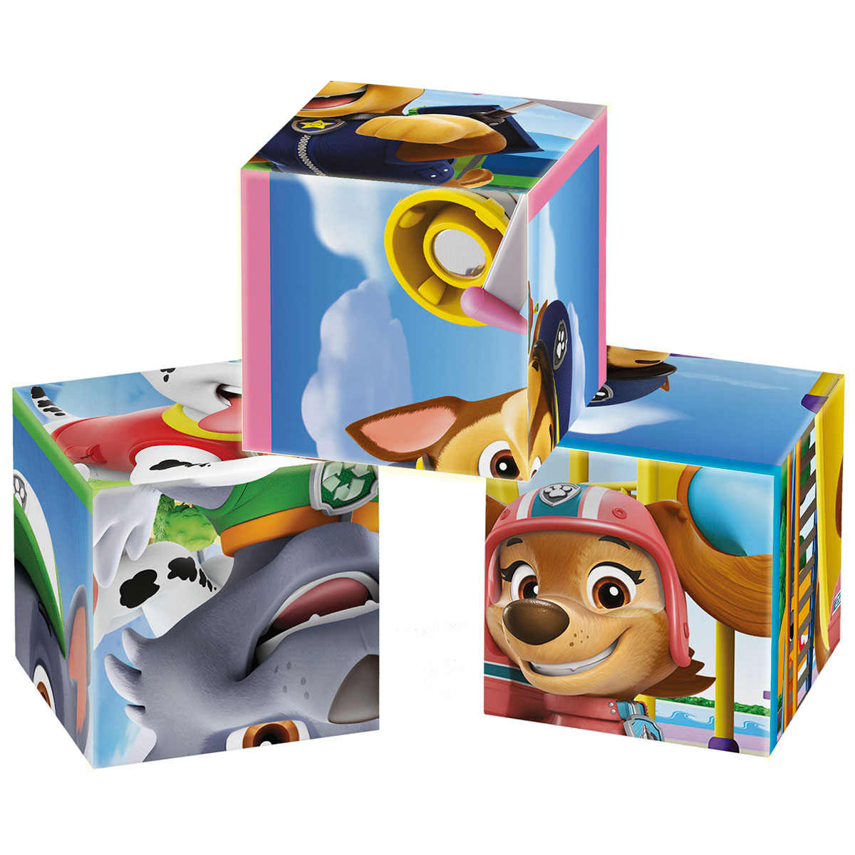Wunderschönes Würfelpuzzle aus der Welt von Paw Patrol mit 6 verschiedenen Motiven, bestehend aus 12 Würfeln.