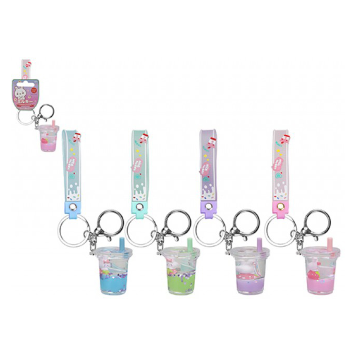 Schlüsselanhänger mit Acryl-Charm, Flüssigkeit und Band, 4-fach assortiert