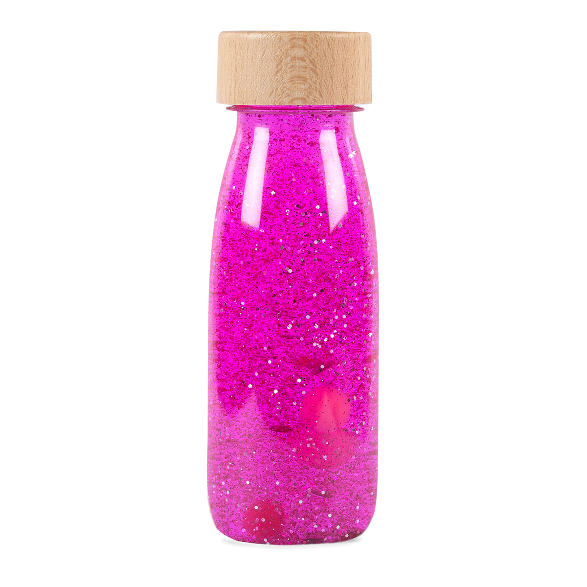 Float Flaschen, der Regenbogen zum Greifen nah. Mit diesen Flaschen, inspiriert von den Farben der Natur, entdecken Kinder Farben, staunen ueber das Licht und foerdern ihre Konzentration, waehrend sie ihren Moment der Ruhe finden. Verwende sie auf Lichttischen fuer einen magischen Effekt oder lass das Kind das Glitzerfliessen, die kleinen Schwimmer und Pompons beim Entspannen betrachten.