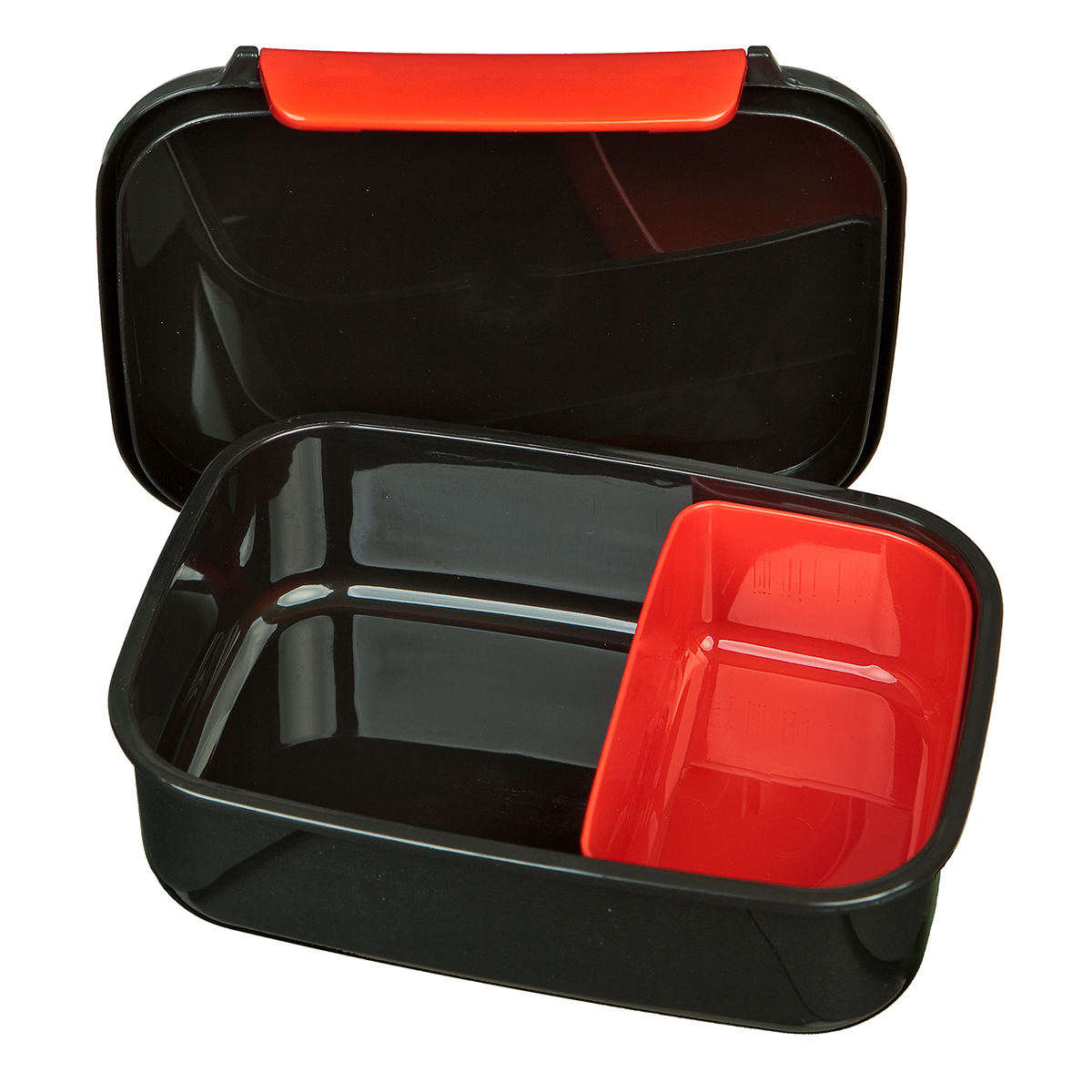 Die Lunchbox bietet Platz fürs Znünibrot, Obst oder Gemüse und verschliesst alles sicher durch den Clipverschluss. Masse: 13.5x18x6cm.