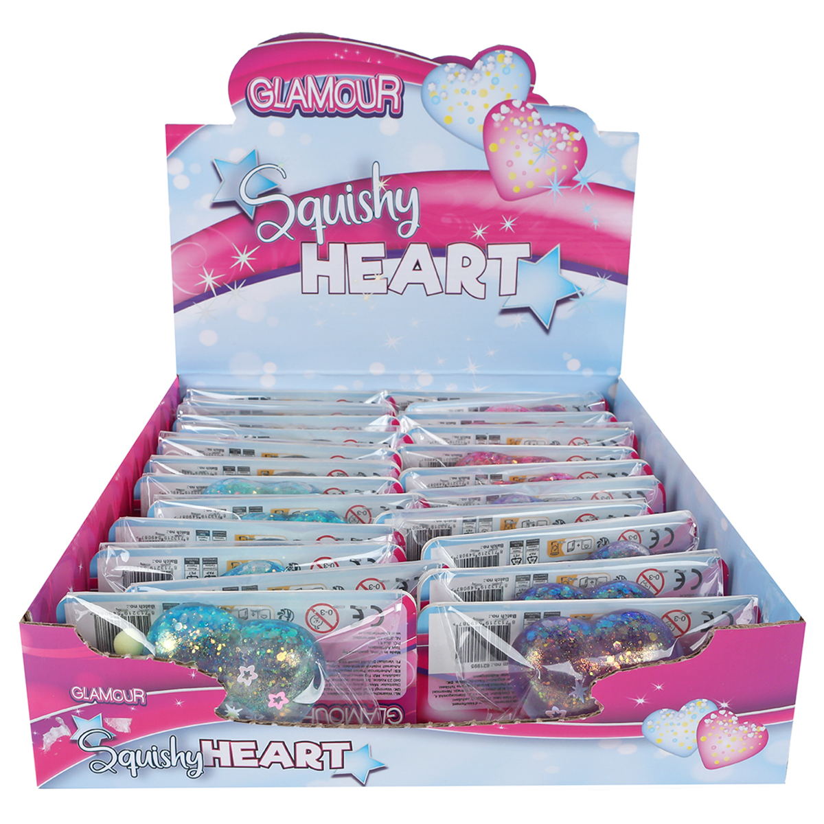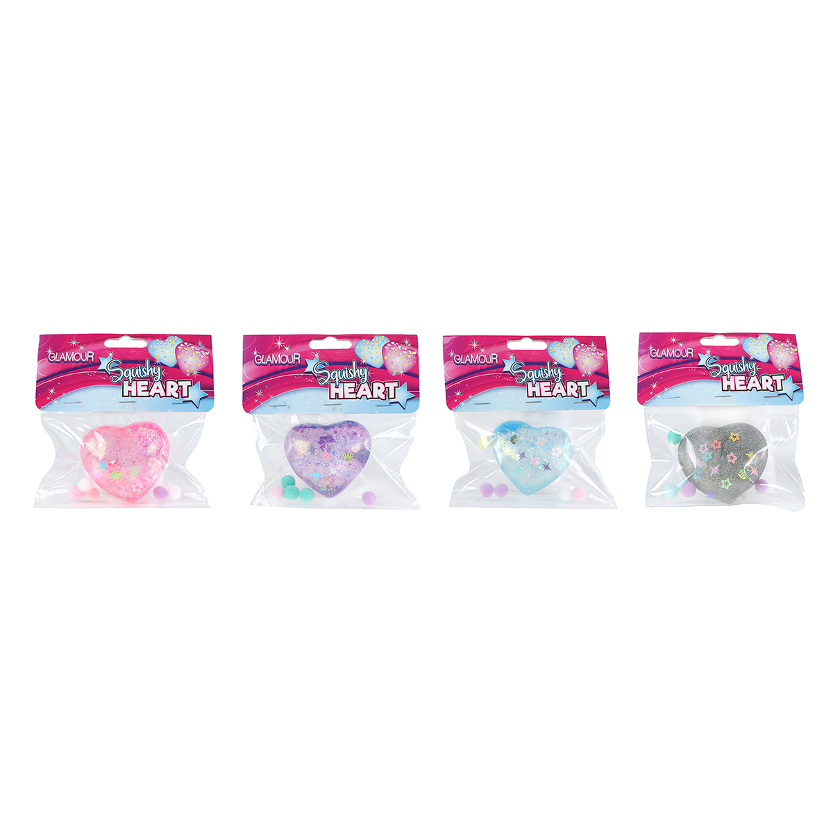 Squishy Herz mit Glitzer 4-fach assortiert.