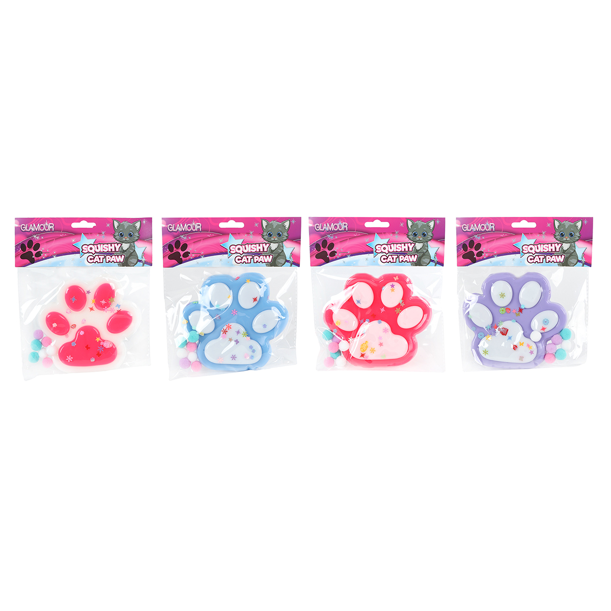 Squishy Katzenpfote mit Glitzer 4-fach assortiert.