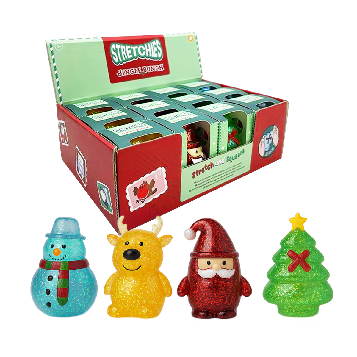 Strechty Glitzerfiguren im Weihnachtsdesign, 4-fach assortiert