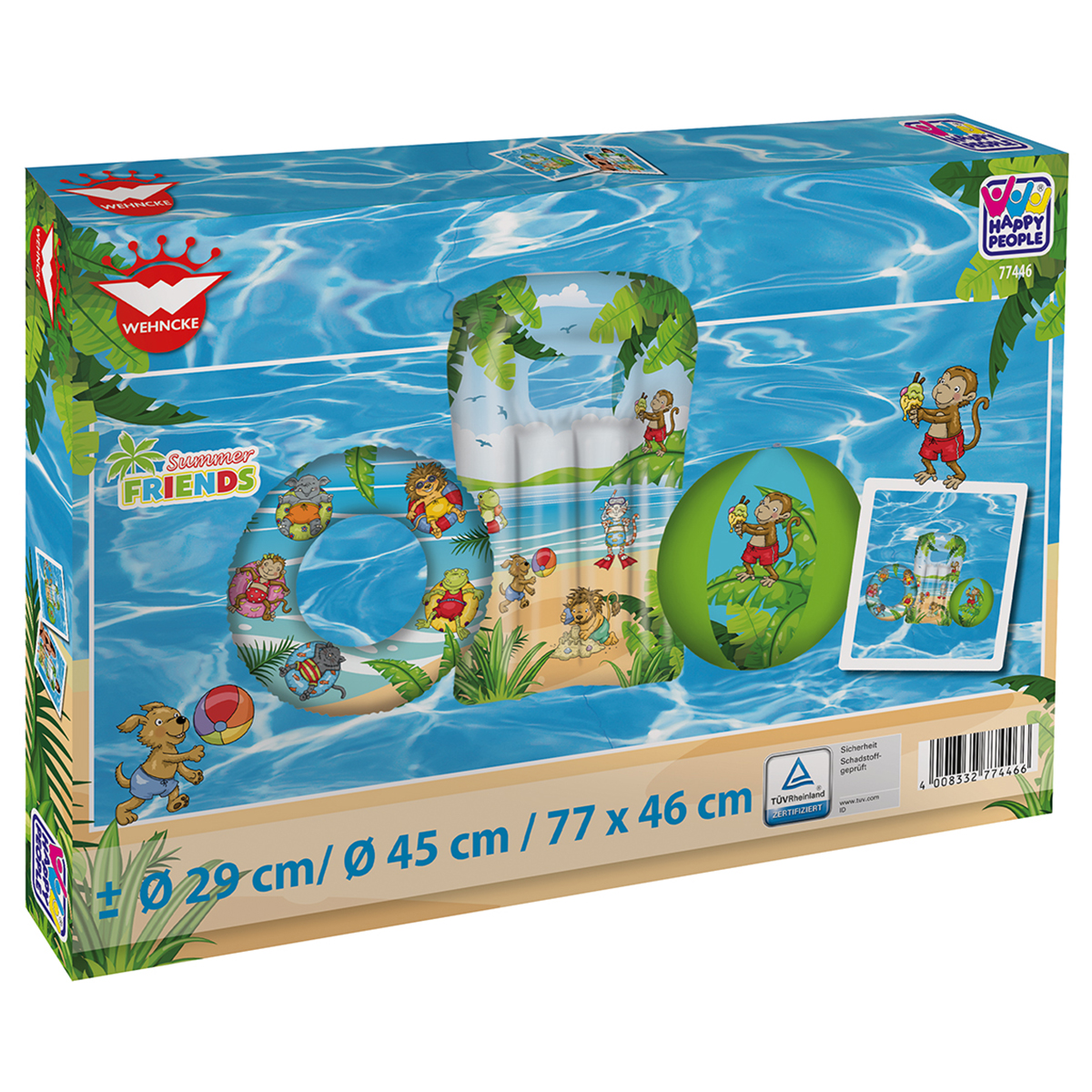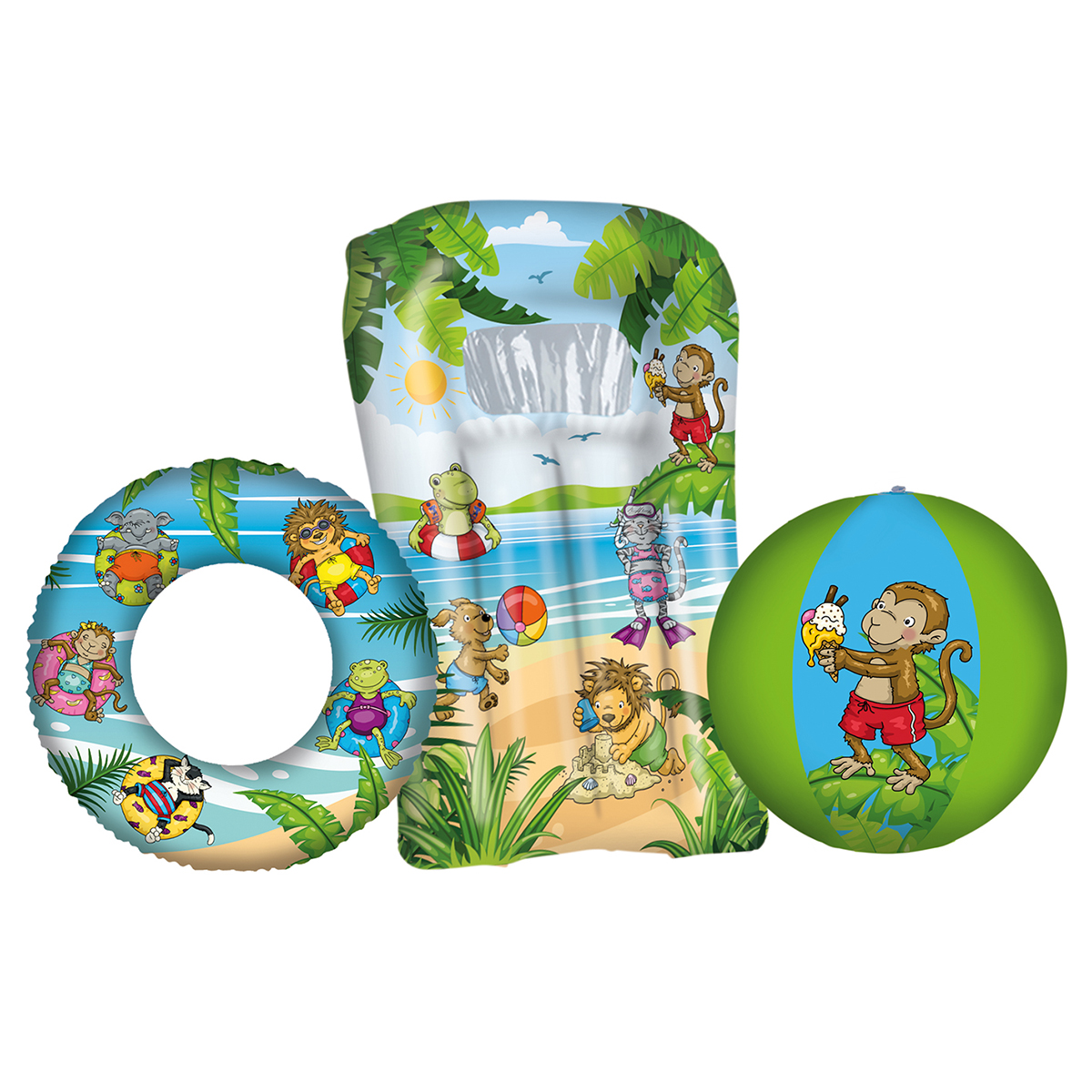 Strandset 3-teilig bestehend aus: Wasserball, Schwimmring und Kindermatratze.
