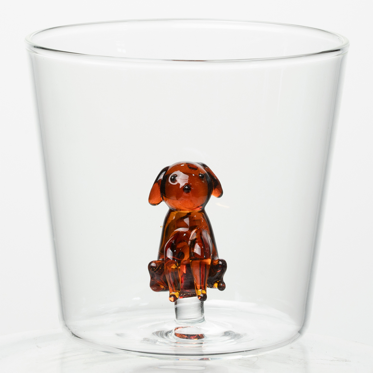 Dieses Trinkglas wird aus hochwertigem Borosilikatglas gefertigt, das für seine Klarheit, Festigkeit und Temperaturwechselbeständigkeit bekannt ist. Dadurch ist das Glas ebenso langlebig wie schön. Doch der wahre Charme liegt im Inneren. Eingebettet in die transparente Form findet sich eine verspielte Glasskulptur, welche sorgfältig von Hand geformt wurde, was bei jedem Schluck einen Hauch von Magie verleiht. Dieses Detail im Inneren verwandelt das Trinken in einen Moment stillen Genusses.