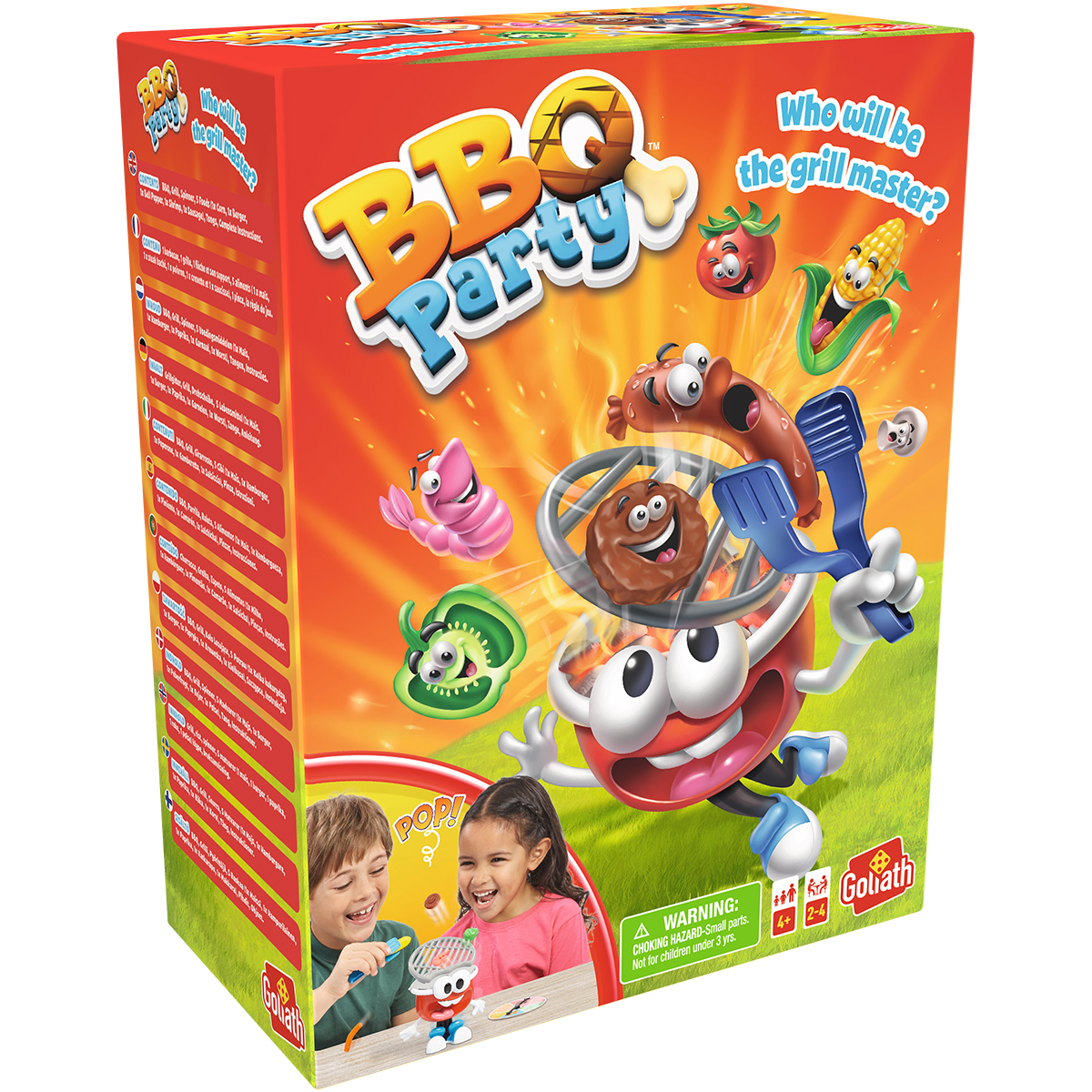 Jeu de société. But du jeu: La grille du barbecue repose sur un déclencheur, 16 aliments en plastique sauteront de façon aléatoire si on appuie trop fort sur la grille. Il faut être le premier à attraper 4 aliments grâce à la pince sans faire sauter la grille.