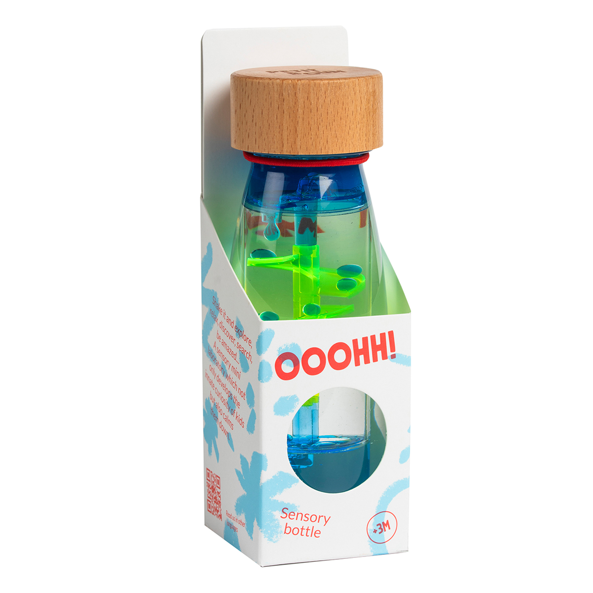 Bouteilles Move les reves en suspension. Que serait-ce que d attraper un reve dans une bouteille ? Avec cette serie, nous avons voulu le decouvrir. Nous allons un pas plus loin dans la recherche de nouvelles experiences sensorielles avec un nouveau liquide offrant un effet de flottement fascinant. Chaque fois que la bouteille est secouee, le voyage commence ! Plantes, astronautes, animaux tous commencent a flotter lorsque la densite du liquide change. Un reve empli de bulles qui stimule l imagination et aide a se detendre.