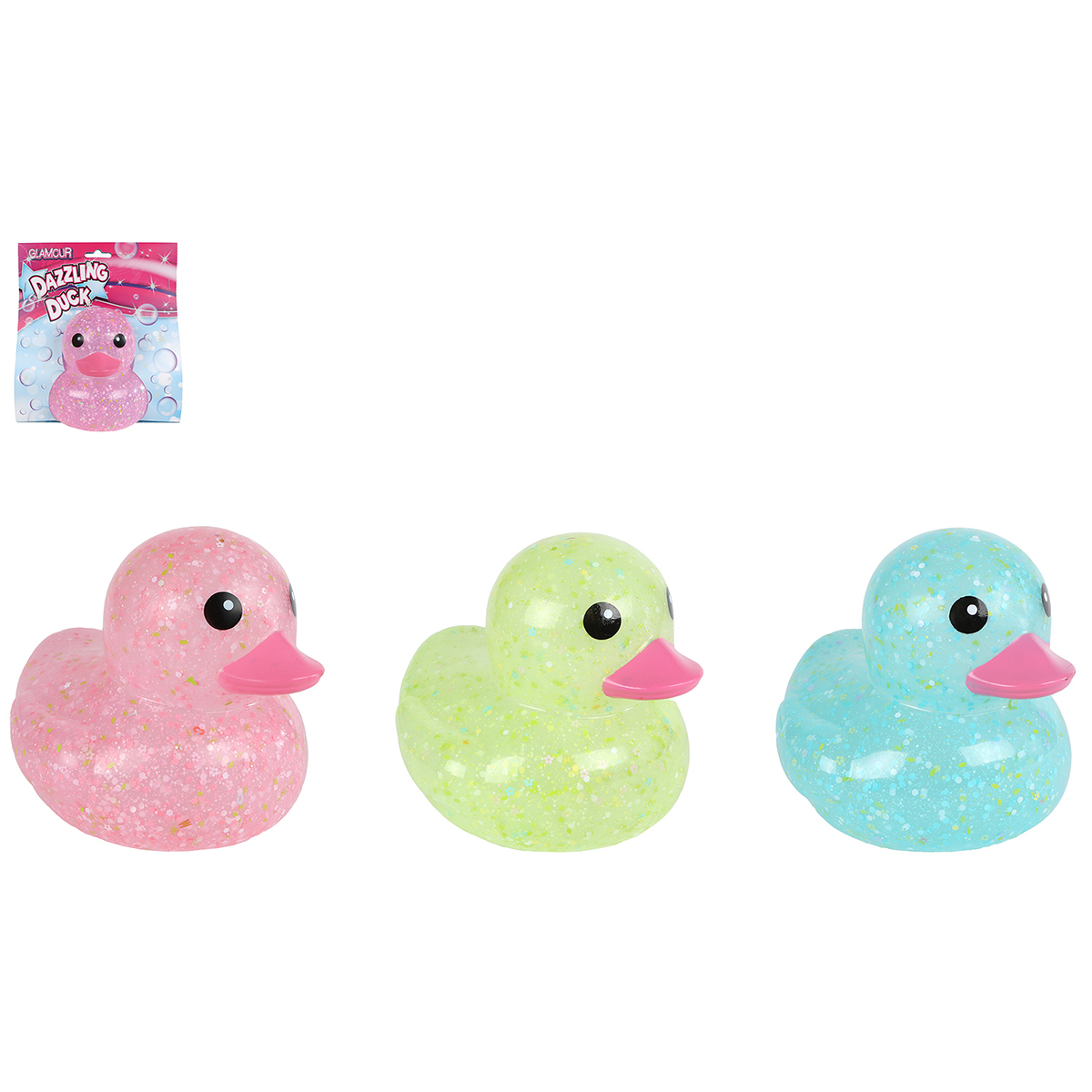Canard de bain 3-fois assortis avec glitter 17x15x13.5cm.