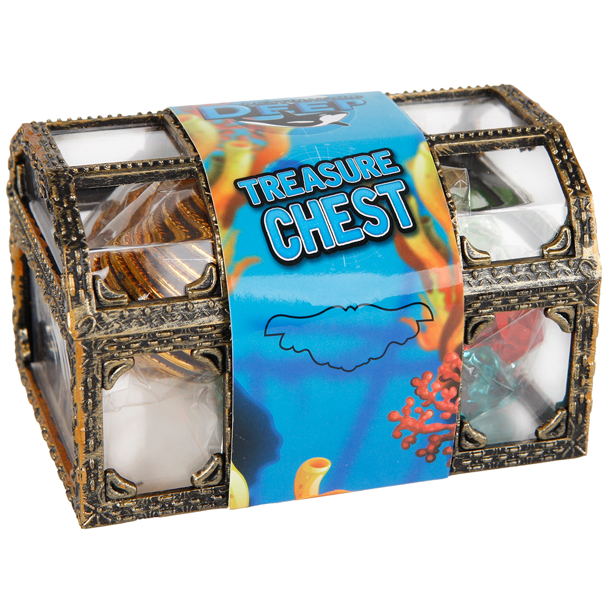 Coffre au trésor 10.5x8cm rempli avec 30 pièces d'or et 30 diamants, 2-fois assortis.