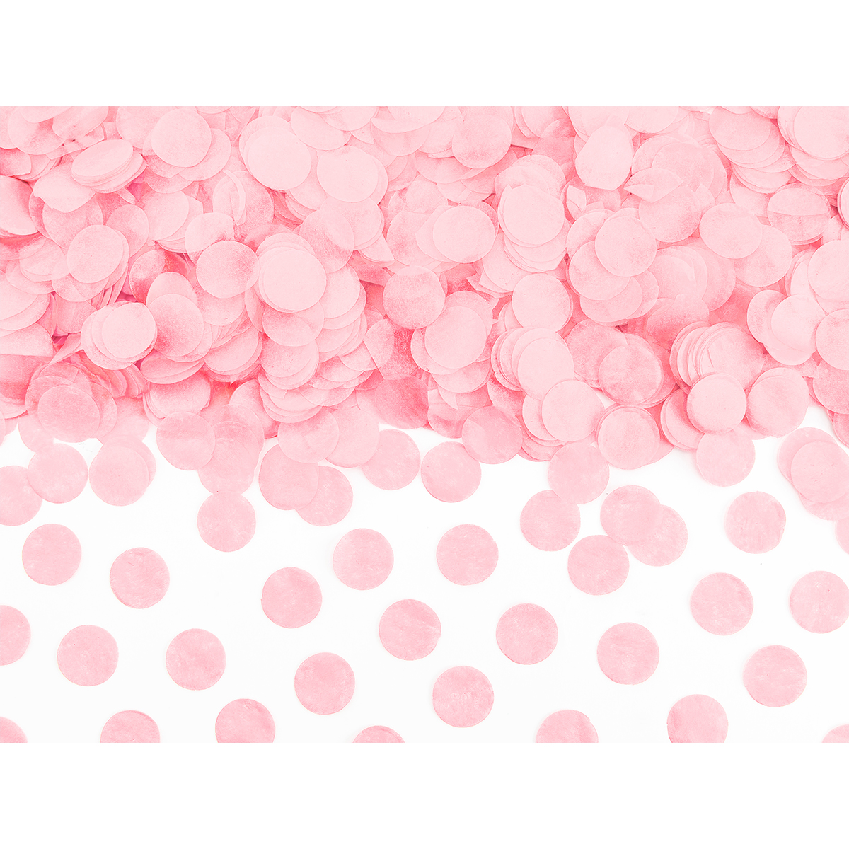 Confettis ronds en papier de soie rose clair, diamètre env. 1,6 cm.