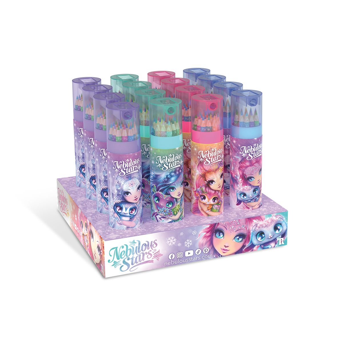 Chaque tube contient un taille-crayon intégré, 18 crayons de couleur et un crayon à papier. Emportez-les partout, dessinez et croquez ! Chaque tube est doté d'un taille-crayon intégré. Contient 18 crayons de couleur et un crayon à papier Étoile Nébuleuse.