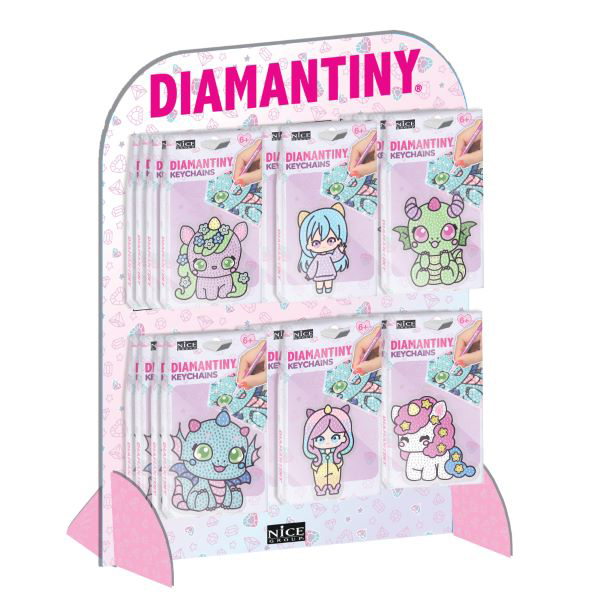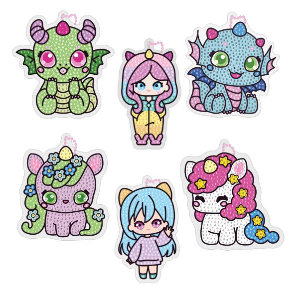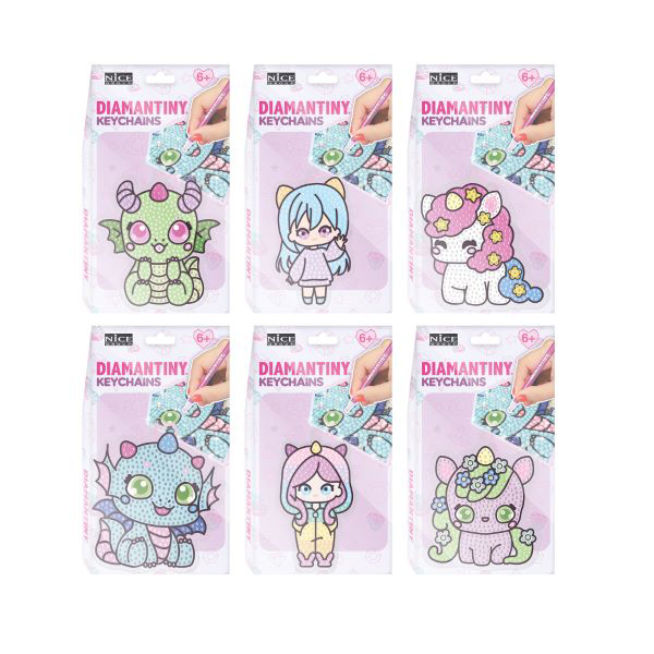 Diamantiny porte-clés à décorer avec des pierres précieuses 3D colorée, 6-fois assortis en display.