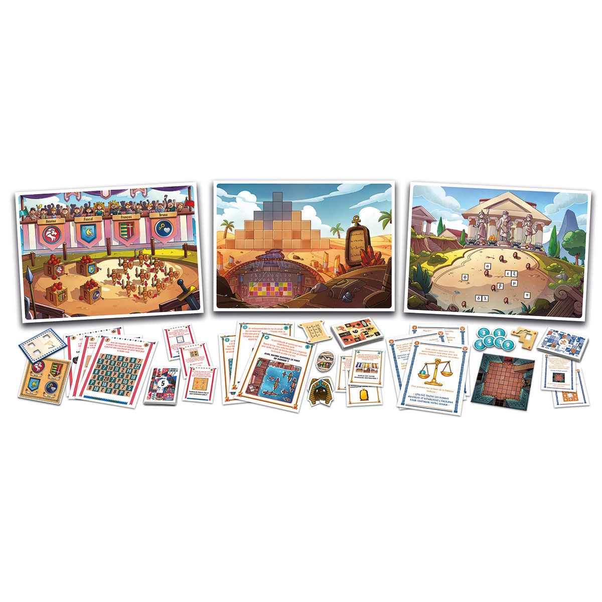 Pour tous les passionnés d’Escape Games, d’énigmes et de devinettes, voici 3 incroyables aventures à vivre en voyageant dans le passé. De nombreuses énigmes à résoudre avec astuce et logique et des indices à retrouver pour parvenir à aller au bout de l’aventure. Voyage à travers 3 aventures: dans l’Égypte antique, au Moyen-âge, en passant par la Grèce antique. Un jeu original qui saura entraîner les grands et les petits dans un tourbillon de plaisir. Des aventures à savourer en récupérant tous les indices et en résolvant les énigmes, tout en exerçant son esprit et sa pensée logique.