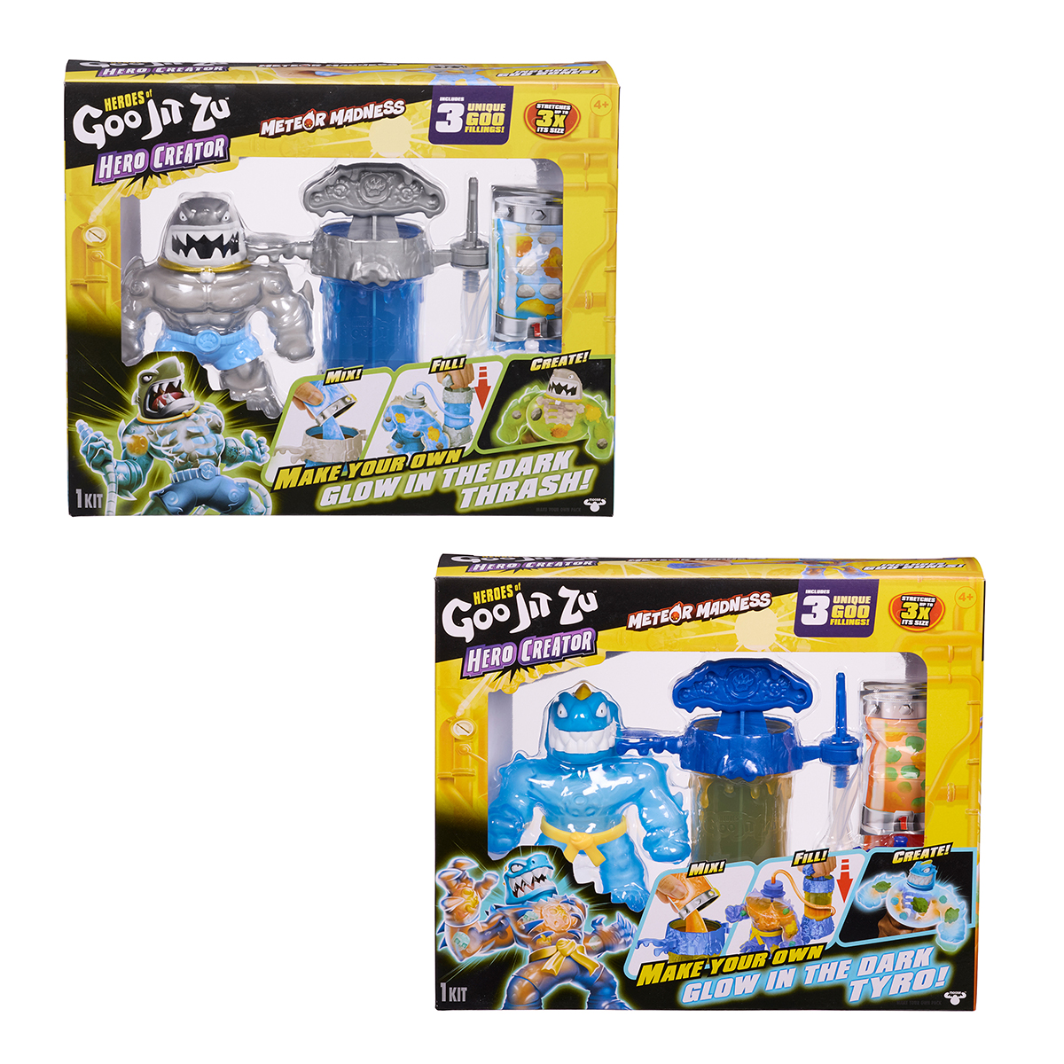 3 garnitures Goo uniques ! Le Goo Jit Zu Hero Creator est livré avec 3 éléments de remplissage uniques que votre enfant peut utiliser pour remplir son Goo Jit Zu ! Parmi ceux-ci, on trouve : des perles, des dents, des créatures marines et des os ! Les enfants peuvent répéter le processus de création encore et encore !