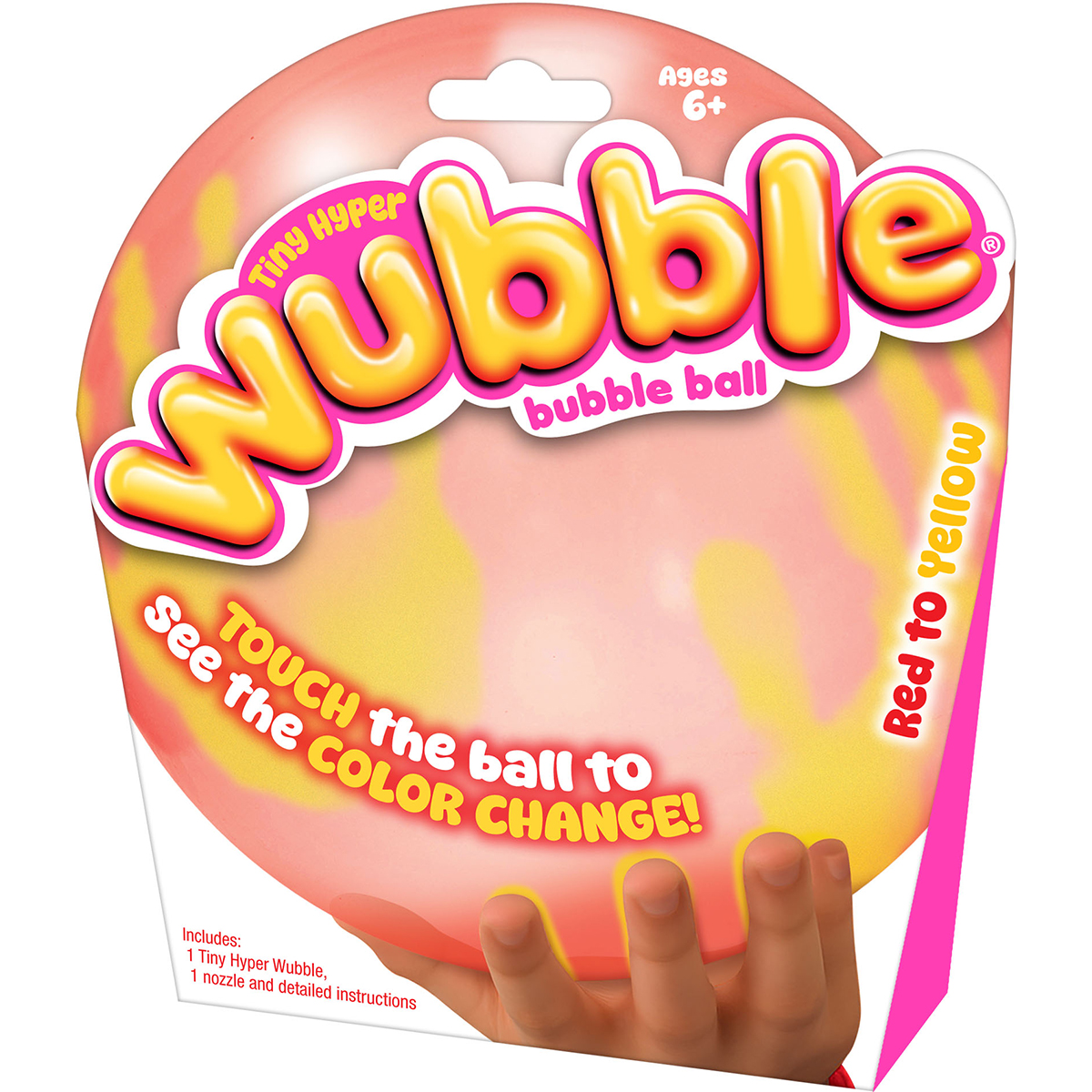 Petite Hyper Wubble Bubble Ball rouge. Sa couleur passe du rouge au jaune ! Et le meilleur, c'est qu'aucune pompe n'est nécessaire !