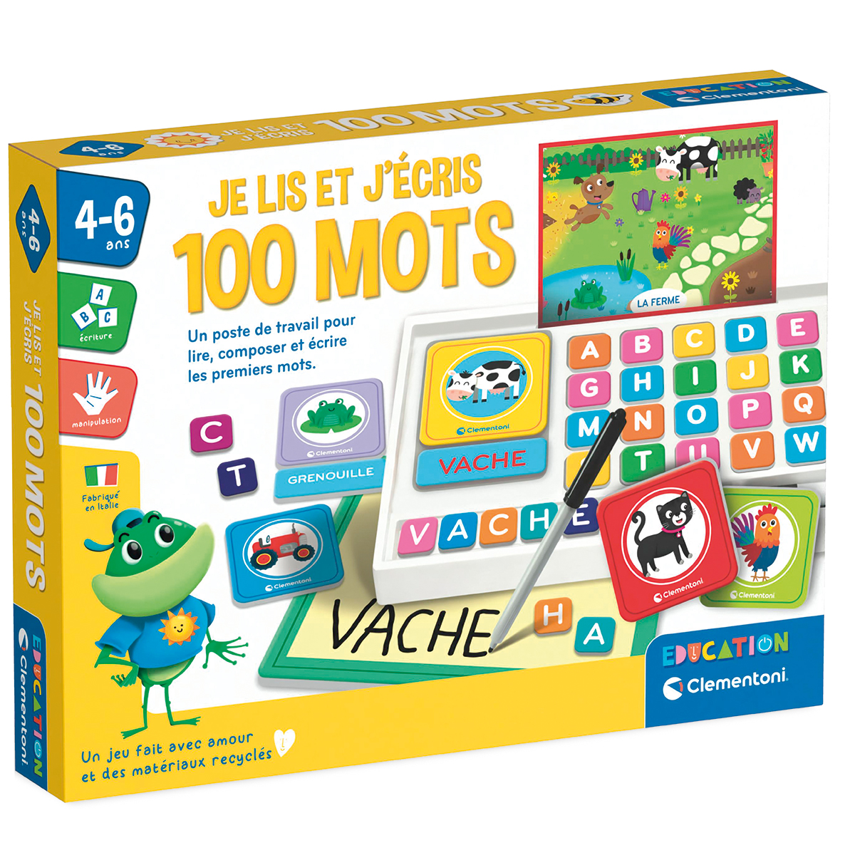 Je lis et j'écris 100 mots. Avec tableau magnétique, les cartes éduvatives, le marqueur effaçable et de nombreux aimants.