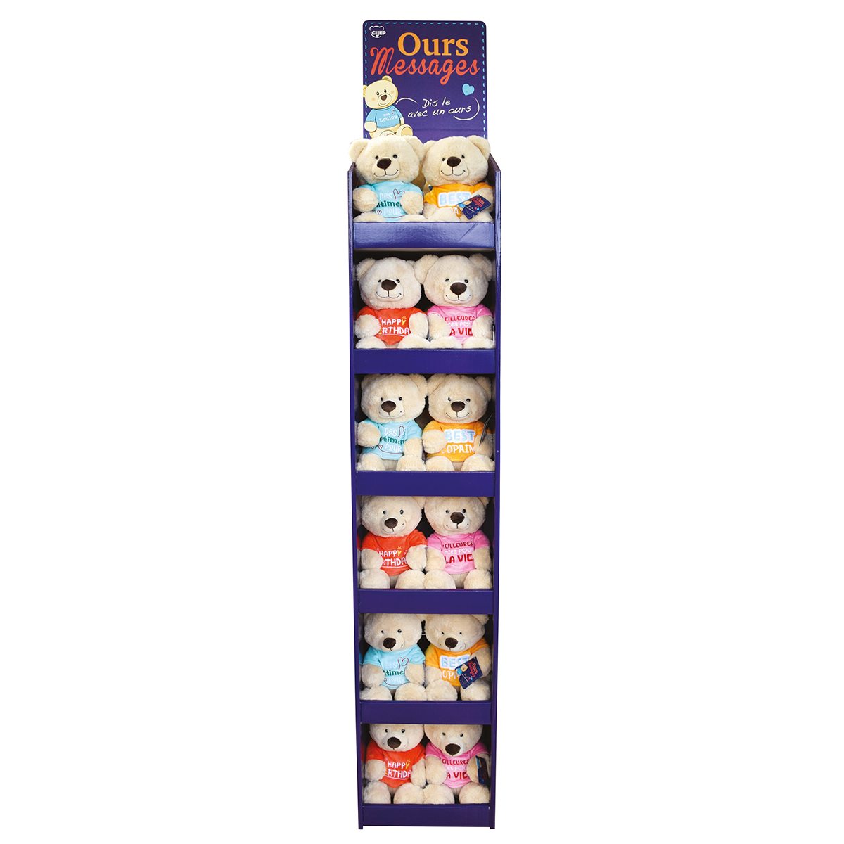 Assorti de 4 oursons avec leurs inscriptions : "Meilleures aimee pour la vie", "Happy Birthday", "J`ai des sentiments pour toi", "best Copains"