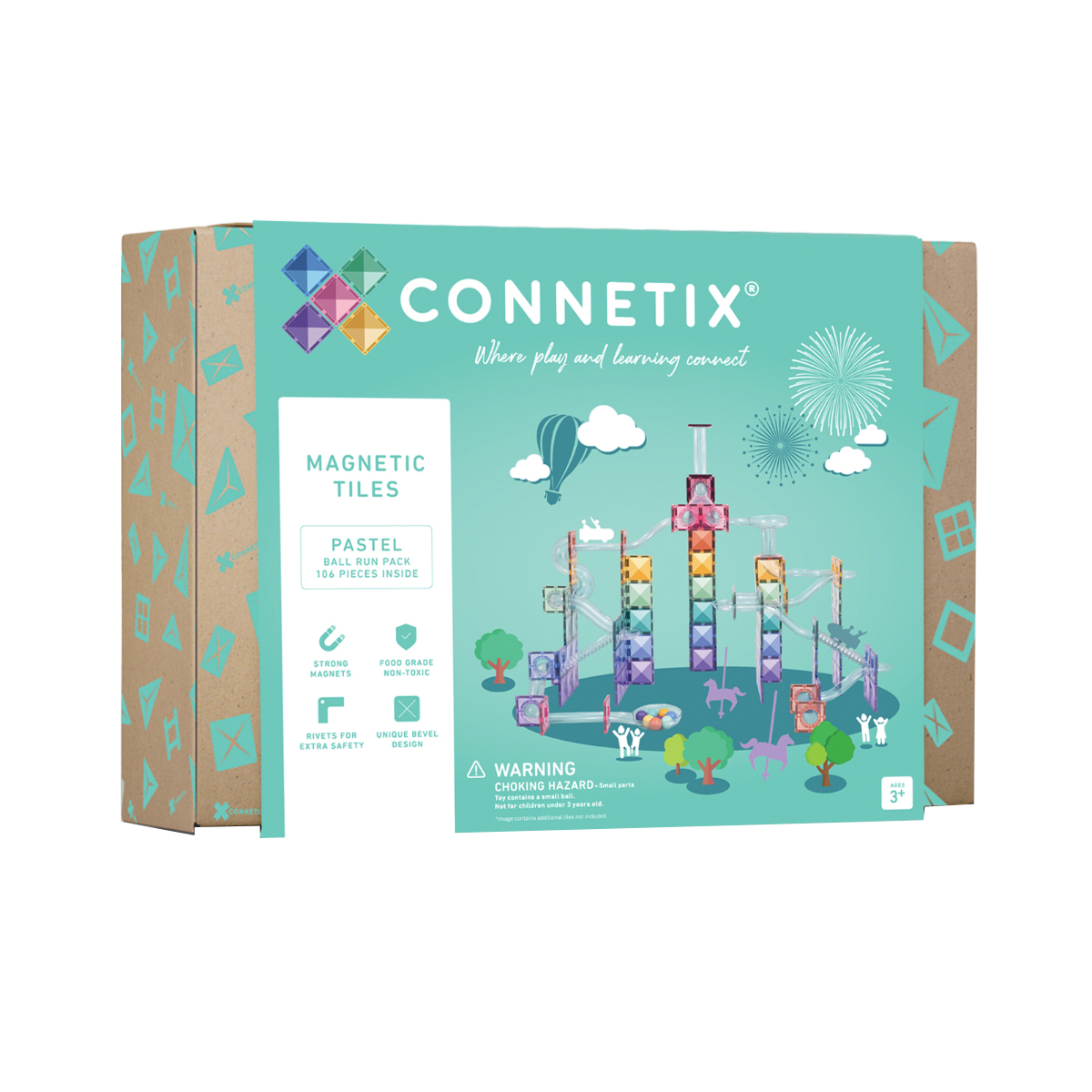 Préparez-vous à une action trépidante! Avec le circuit à billes pastel Connetix de 106 pièces, créez et construisez votre propre circuit! Les tubes rainurés transparents, au design exclusif et disponibles en différents styles (escaliers sonores, virages en S, tubes fendus), ainsi qu'une sélection de connecteurs aux couleurs pastel et 8 billes en bois assorties, offrent des possibilités de création infinies. Le circuit à billes pastel est le complément idéal de tout ensemble Connetix standard. Combinez-le avec d'autres pièces Connetix pour des constructions encore plus grandes et explorez la gravité et le mouvement comme jamais auparavant. Grâce à cet ensemble polyvalent, toute la famille peut créer d'innombrables circuits à billes et découvrir les possibilités illimitées des pièces! pistes sensorielles, tubes de tri, labyrinthes et bien plus encore!