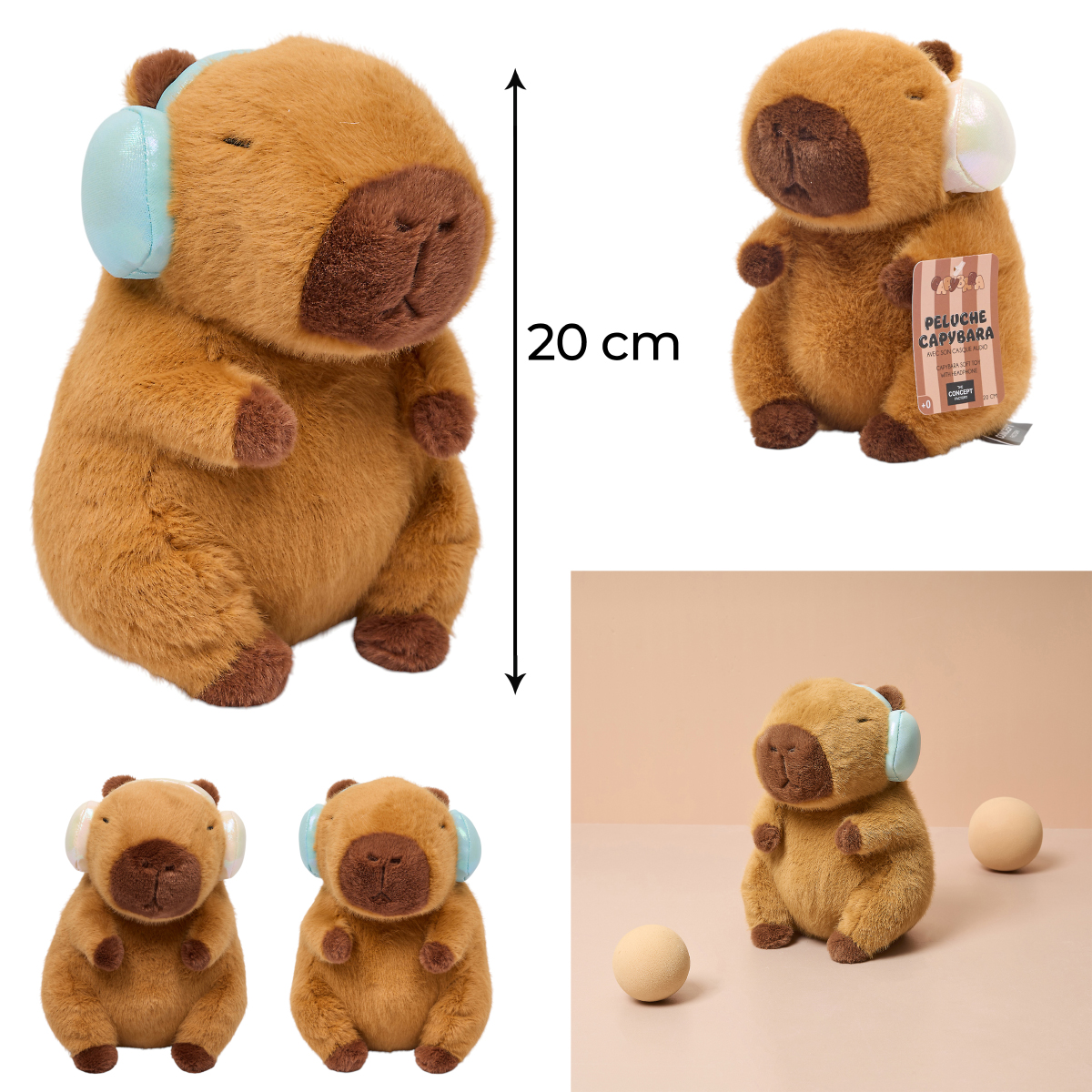 Peluche Capybara H 20cm avec des écouteurs, 2-fois assortis