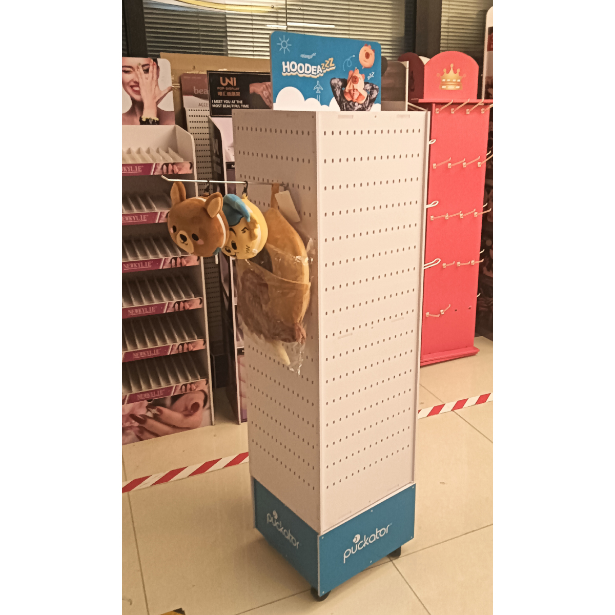 Présentoir pour coussins de voyage avec 30 crochets pour un agencement personnalisé. Taille: 42x42x179cm