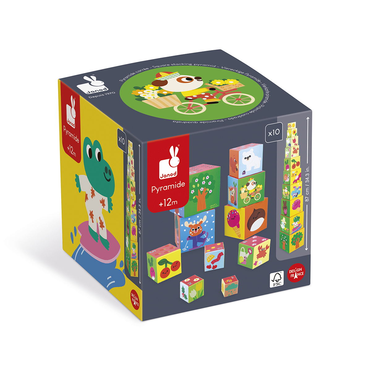 Partez pour un voyage ludique avec cette pyramide en carton à empiler ! Composée de 10 cubes, elle invite les enfants à découvrir les 4 saisons à travers des illustrations colorées. Sur le dessus de chaque cube, des chiffres en valeur numérique et des éléments à compter l'aident à se familiariser avec les premiers apprentissages du calcul. Favorise le développement de la motricité fine et de la coordination main/oeil. Jouet d'éveil en carton FSCTM pour les enfants à partir de 12 mois. développement de la motricité fine et de la coordination main/oeil. Jouet d'éveil en carton FSCTM pour les enfants à partir de 12 mois.