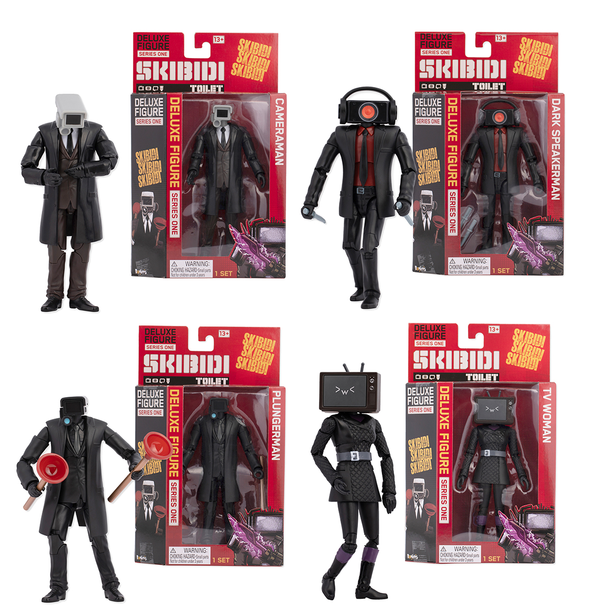 Skibidi Toilet suit une guerre fictive entre les toilettes Skibidi & l'Alliance, en compagnie de plusieurs personnages qui sautent dans l'action ! Avec une hauteur de près de 15 cm, les figurines de la série Collector sont les plus grandes et les plus cools des figurines à collectionner Skibidi Toilettes.
