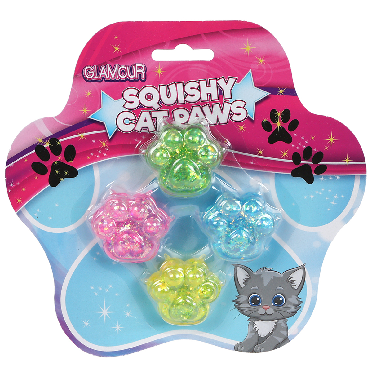 Squishy 4 pates de chat avec glitter.