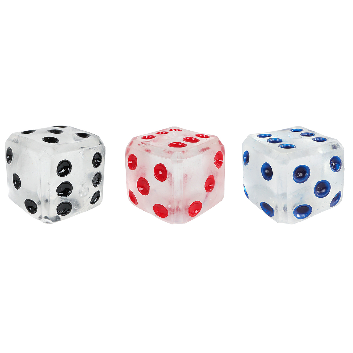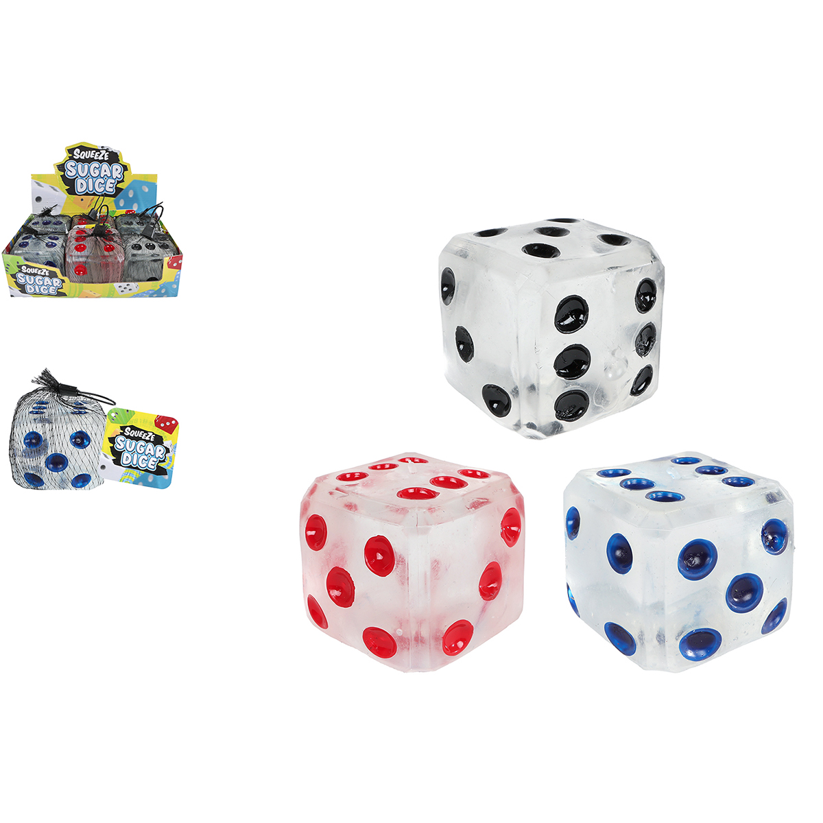 Squishy Méga dés 3-fois assortis 7cm en display.