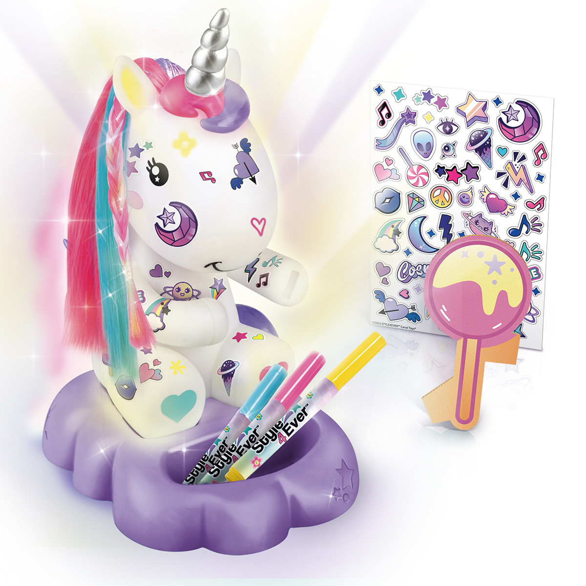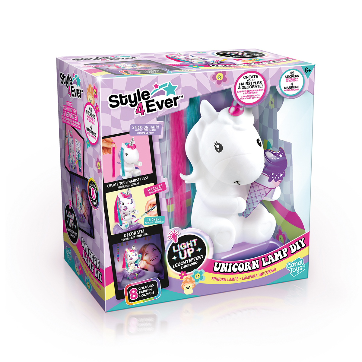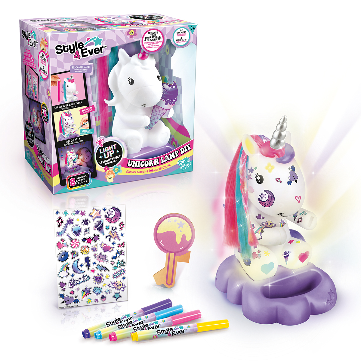 Créez votre propre coiffure et décorez votre lampe licorne avec toutes sortes d'accessoires girly !