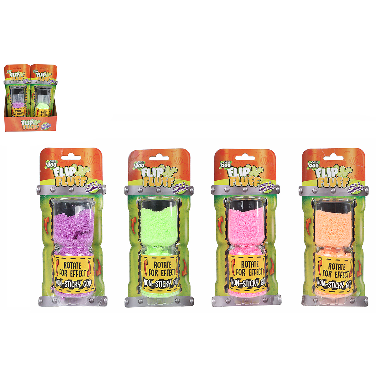 Super Goo Miettes Flip 'n Fluff 25 grammes 4-fois assortis en display.