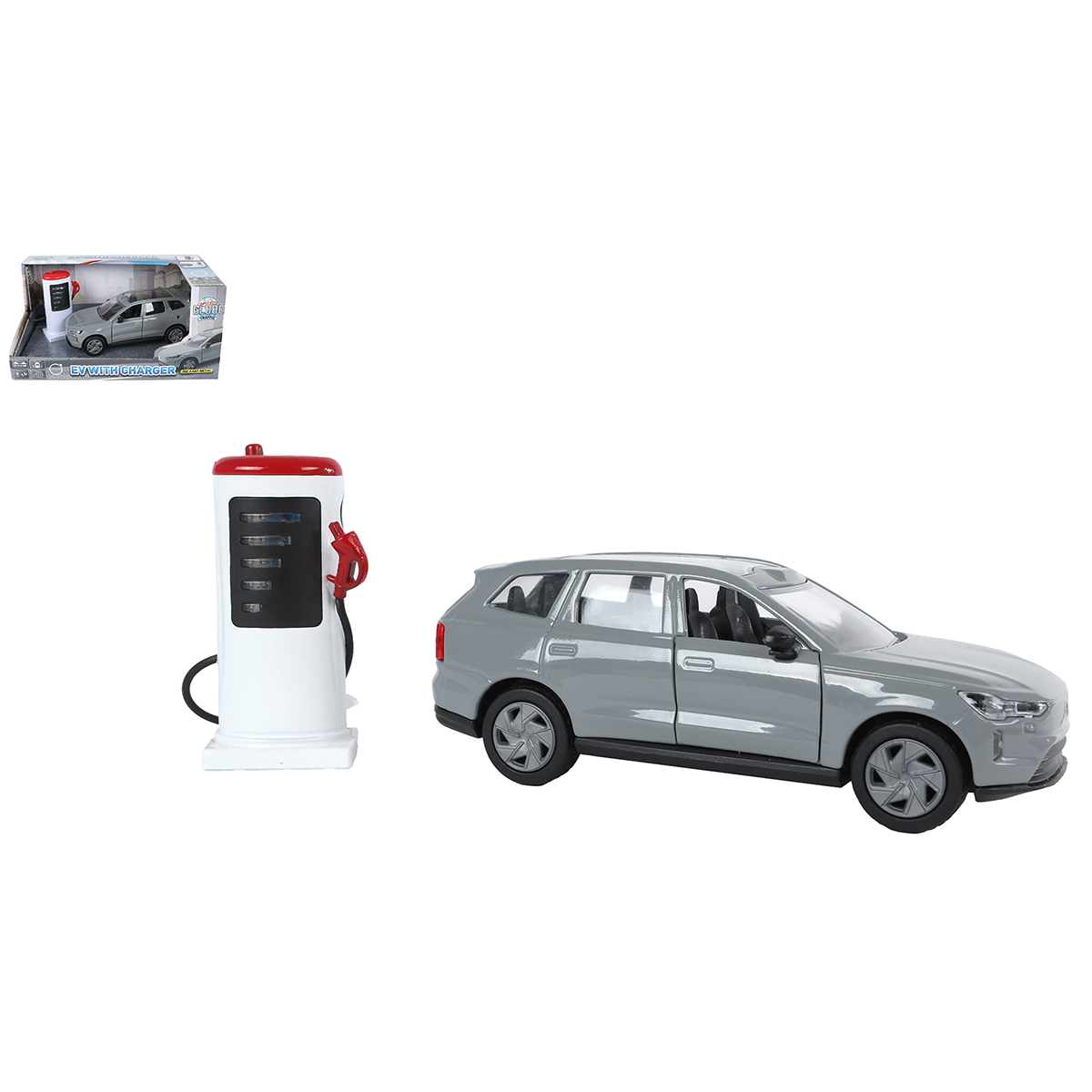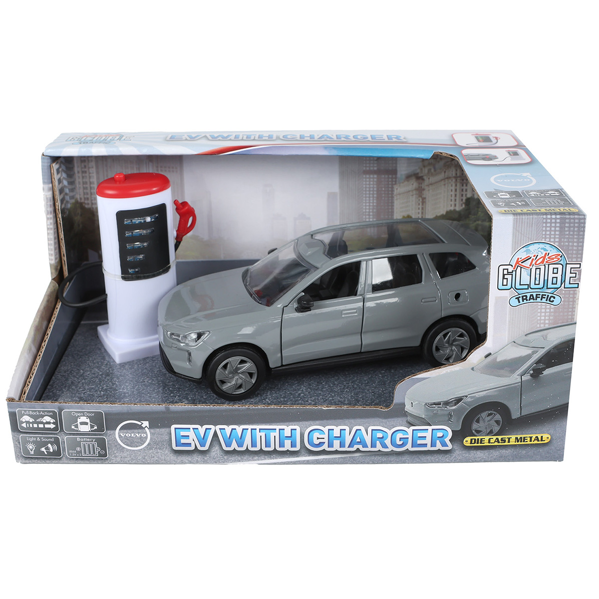 Volvo EX90 avec station de recharge, lumières et sons, métal.